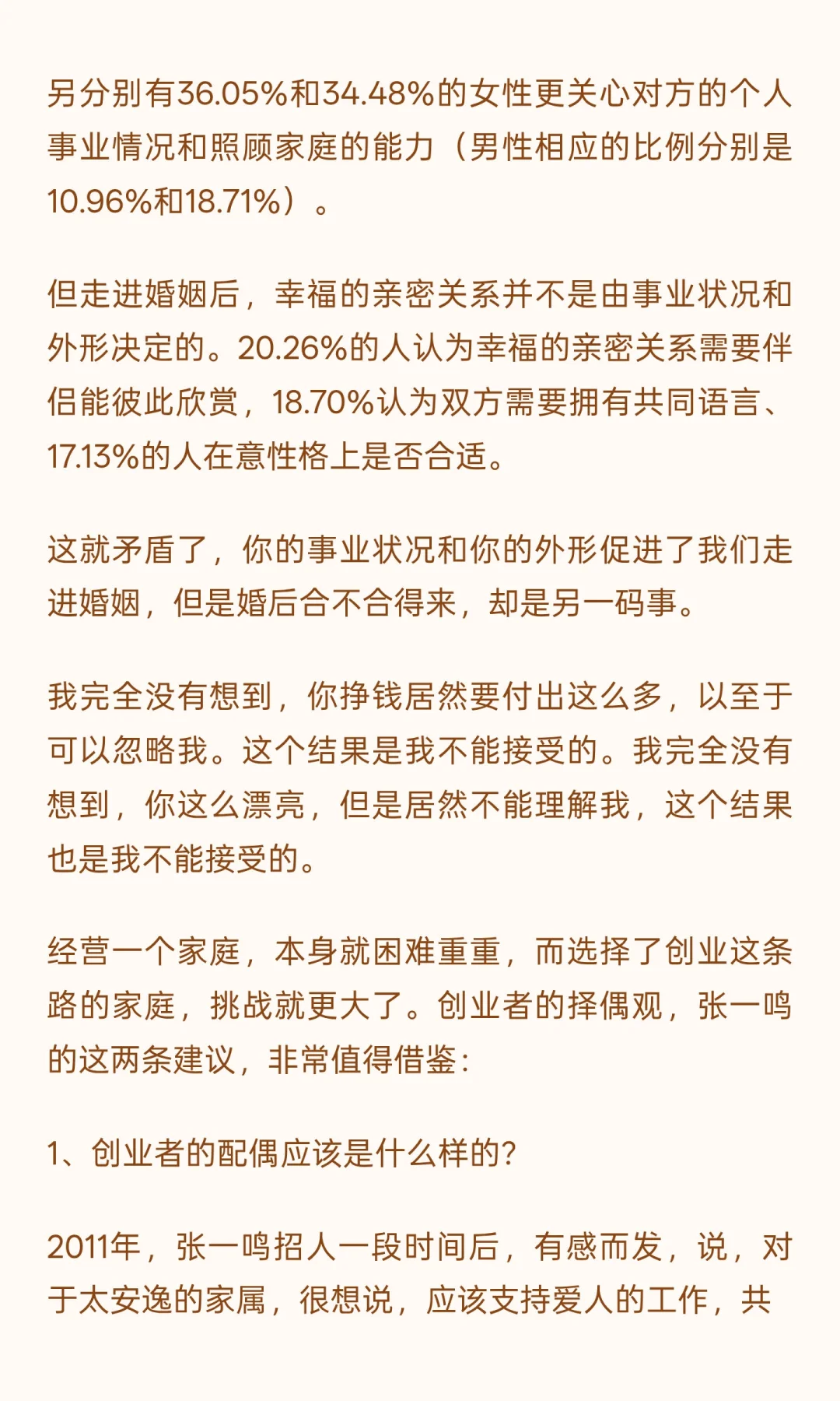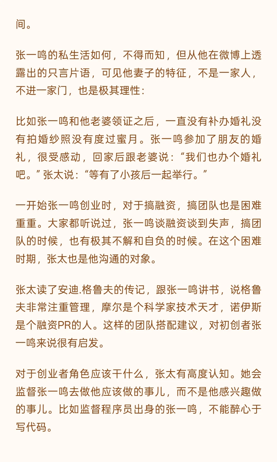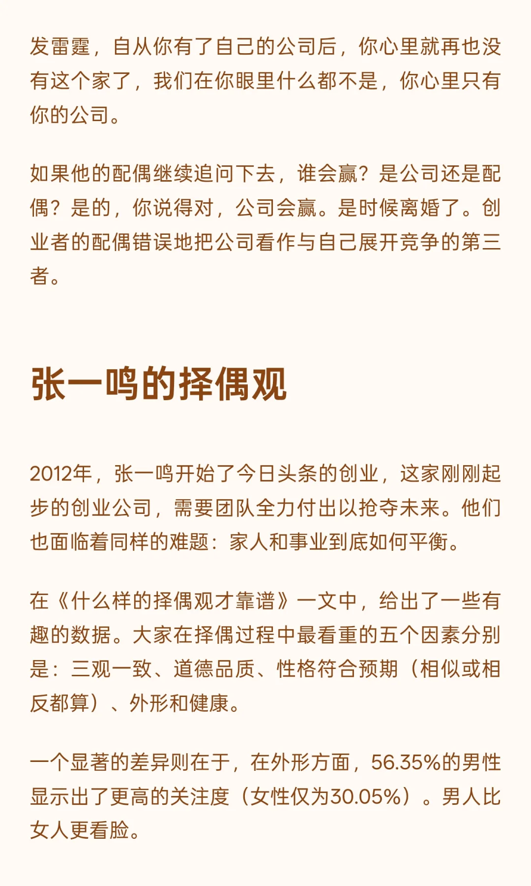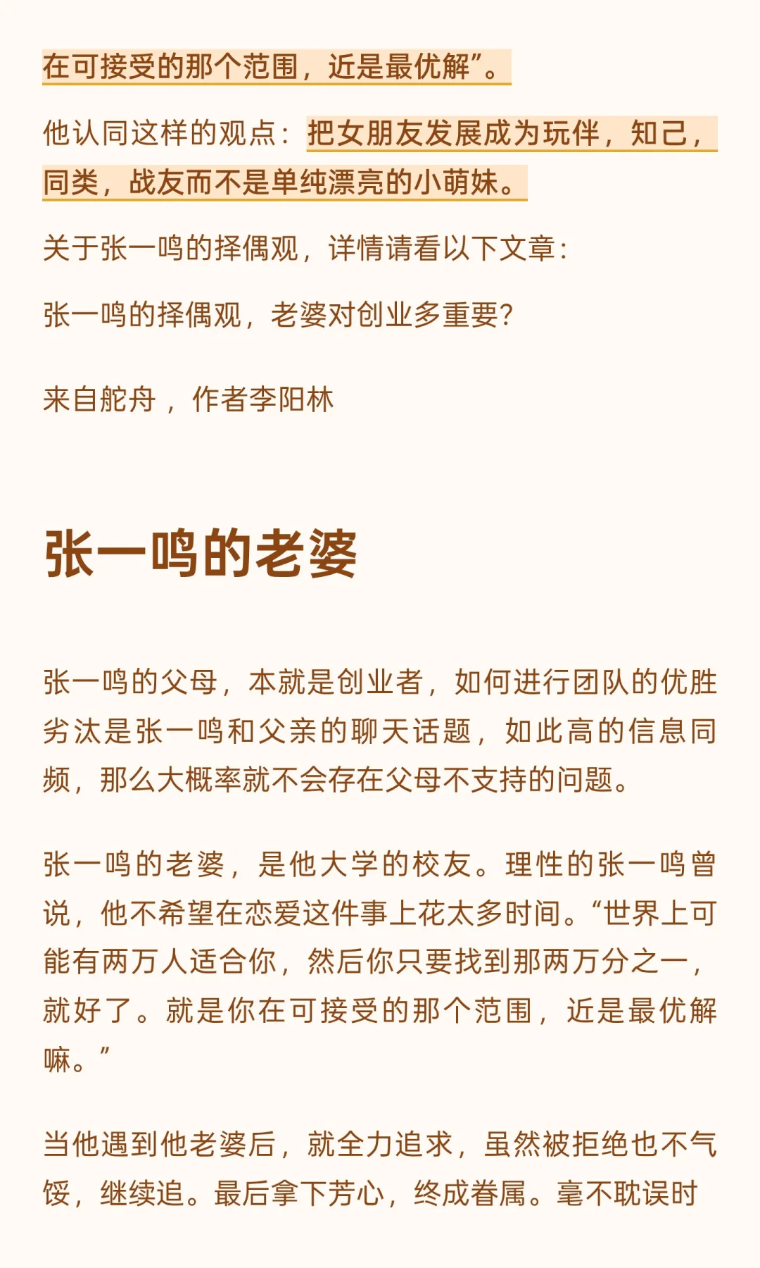 ———摘自李阳林的《张一鸣的择偶观,老婆对创业多重要》