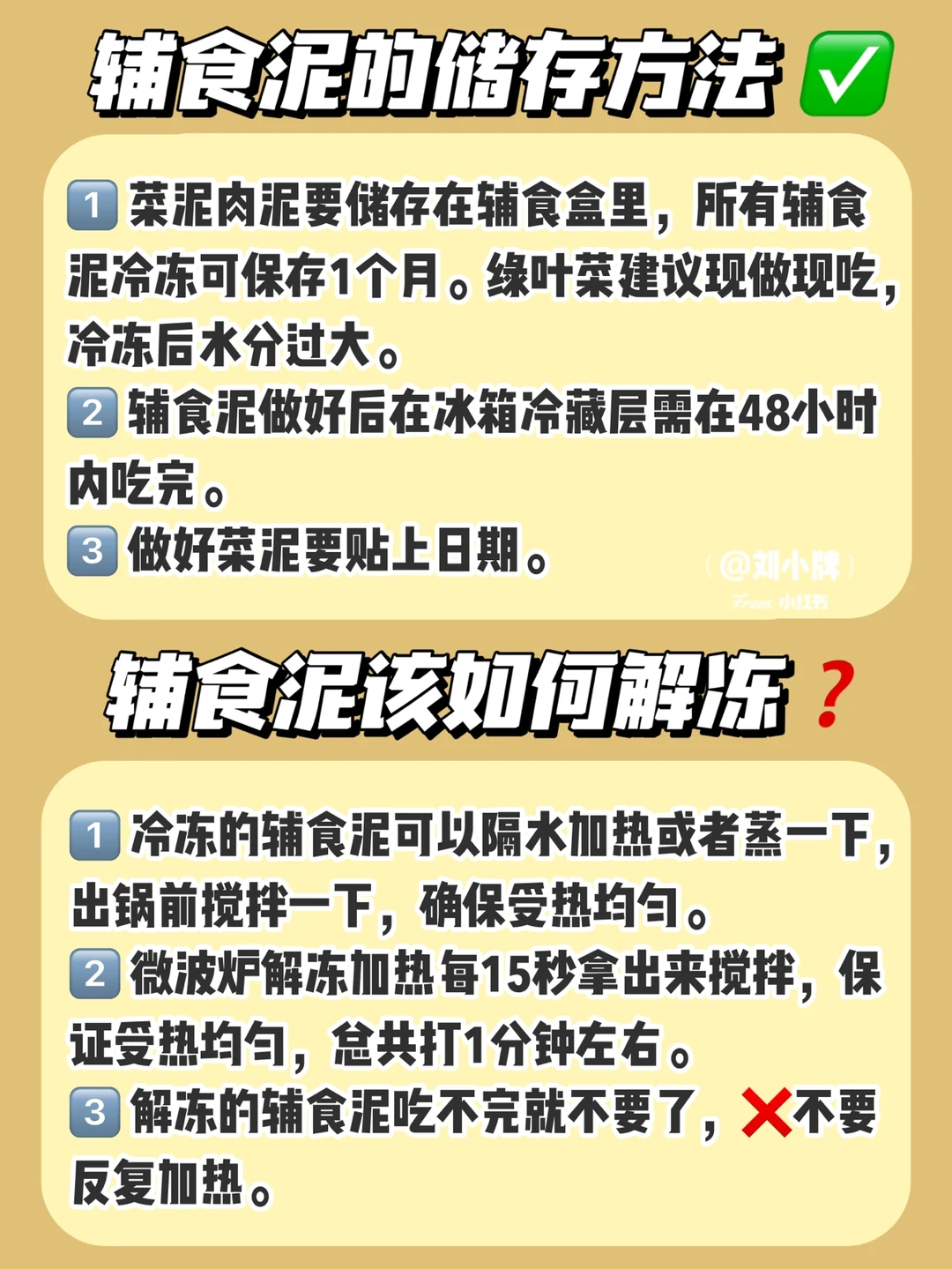 ⚠️解冻过的辅食泥吃不完就要扔掉,不可以重复加热。