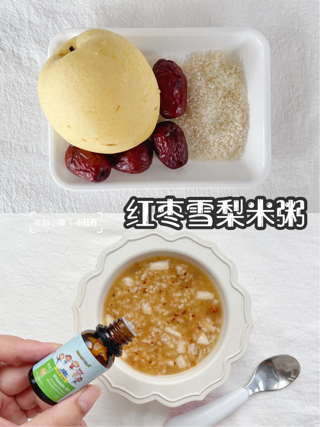 红枣蒸一下去核,放入料理机打成枣泥。将枣泥和雪梨小块放入大米粥搅拌均匀。甜甜的红枣和爽口的雪梨,专治不爱吃饭的宝宝。