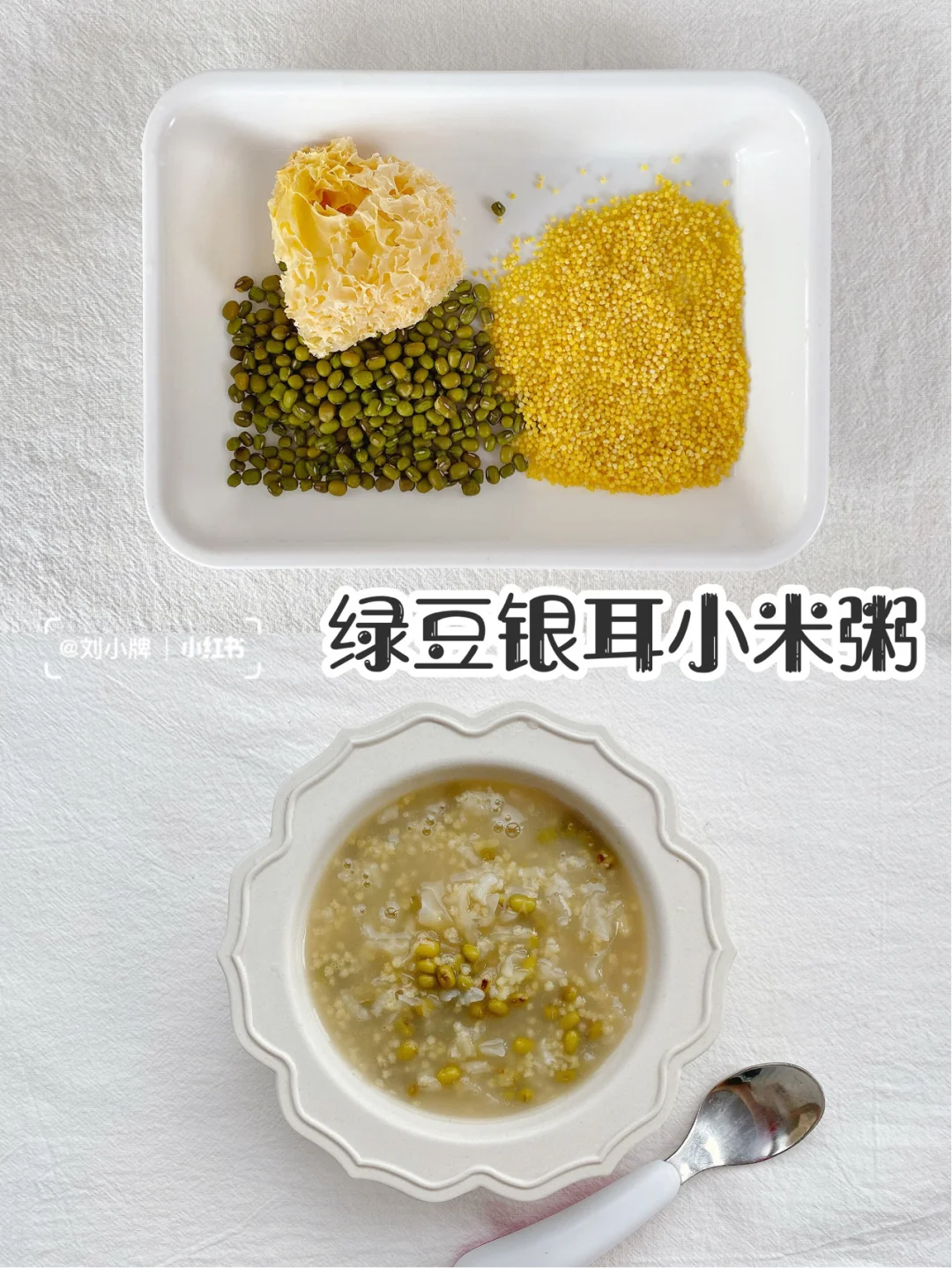 绿豆提前一夜泡水,银耳泡发两小时撕成小块。将绿豆银耳小米加水一起煮成粥,可以加几块冰糖,清甜解暑。