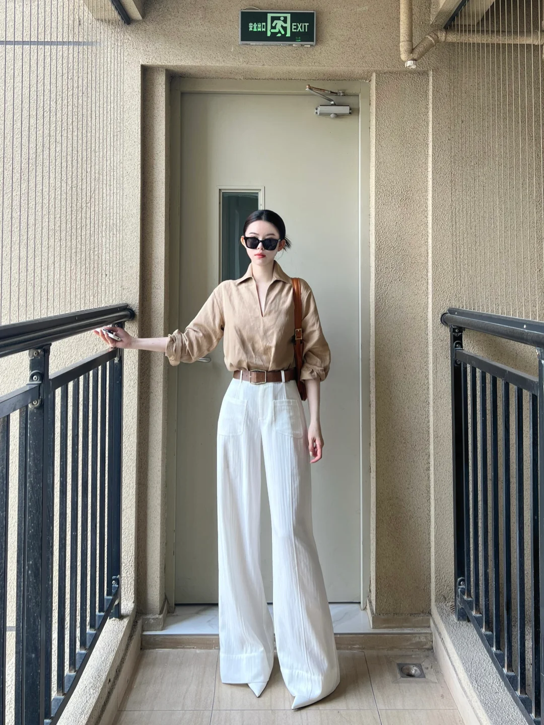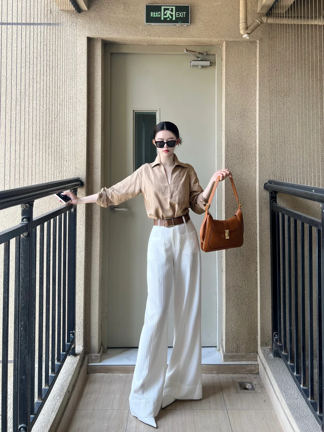 初秋通勤不就是一个衬衫➕一条白裤子吗!