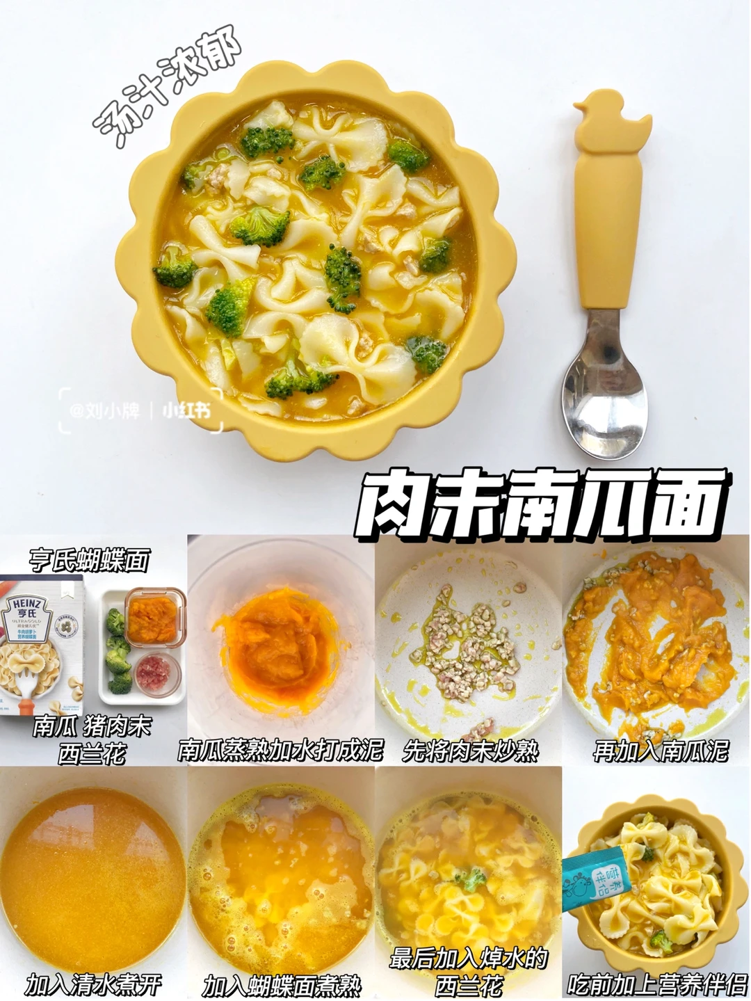 南瓜、猪肉末、西蓝花、亨氏蝴蝶面