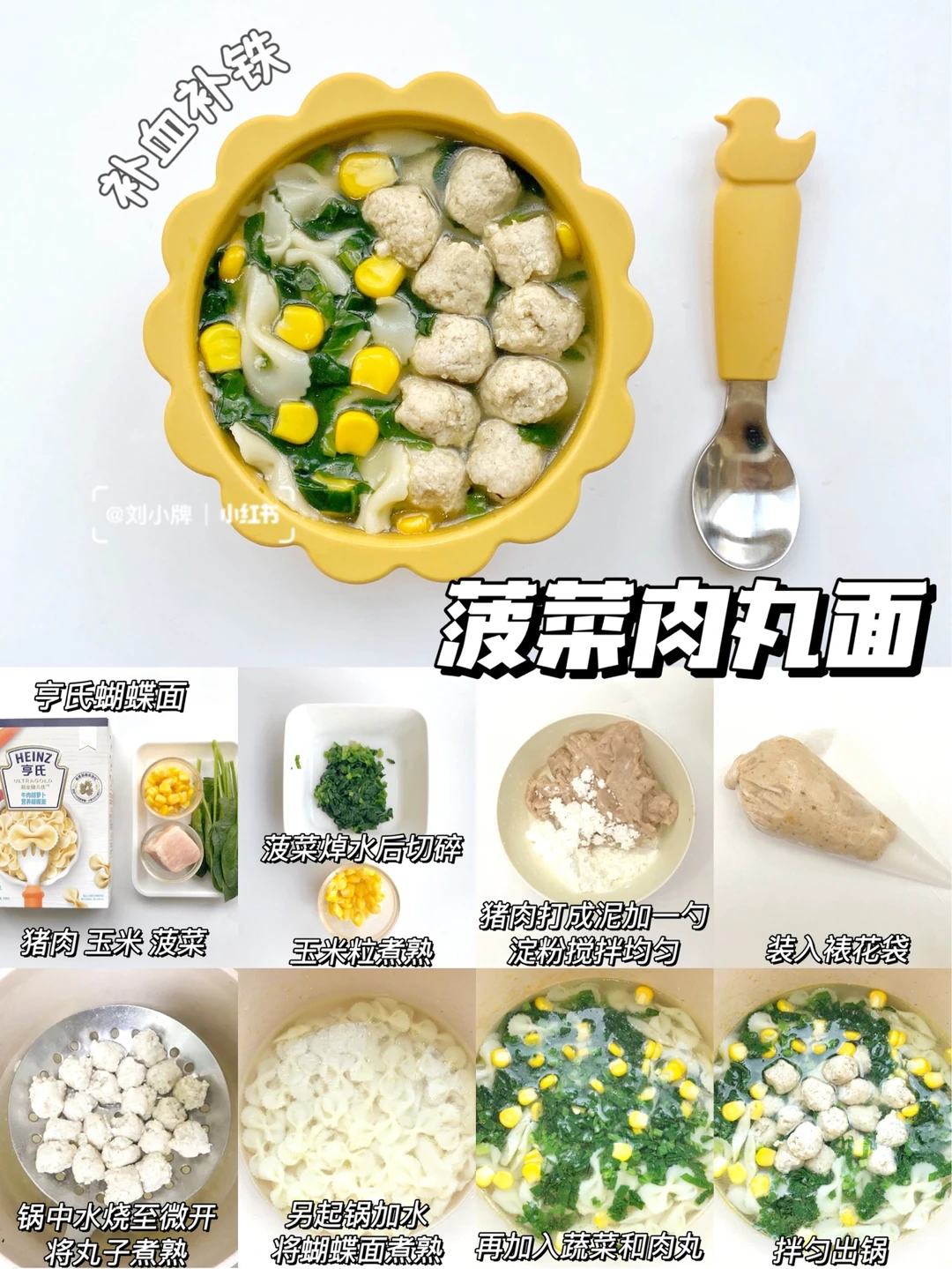菠菜、猪肉、玉米、亨氏蝴蝶面