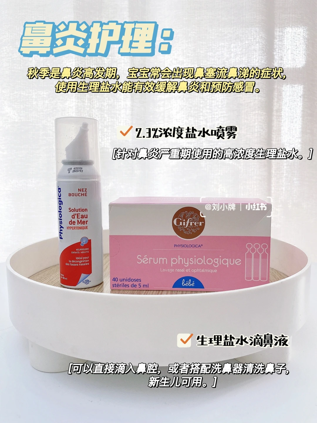 换季随之而来的就是鼻炎了,小朋友鼻塞真的是头疼,赞赞就是经常会面临鼻塞的问题。所以我们家中常备生理海盐水,现在每天早晚都会清洗鼻子,可以把小鼻子里的脏东西洗出来,舒服多了。灌装的这款是2.3浓度的高渗海盐水,针对鼻炎严重期使用,不作为日常护理。