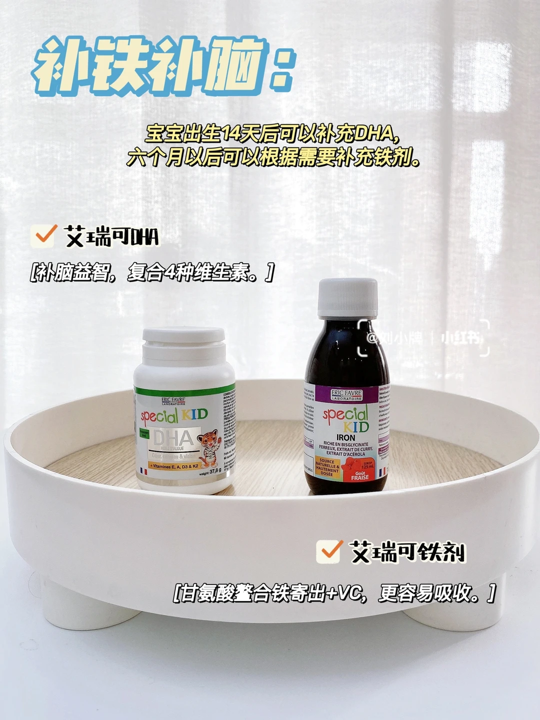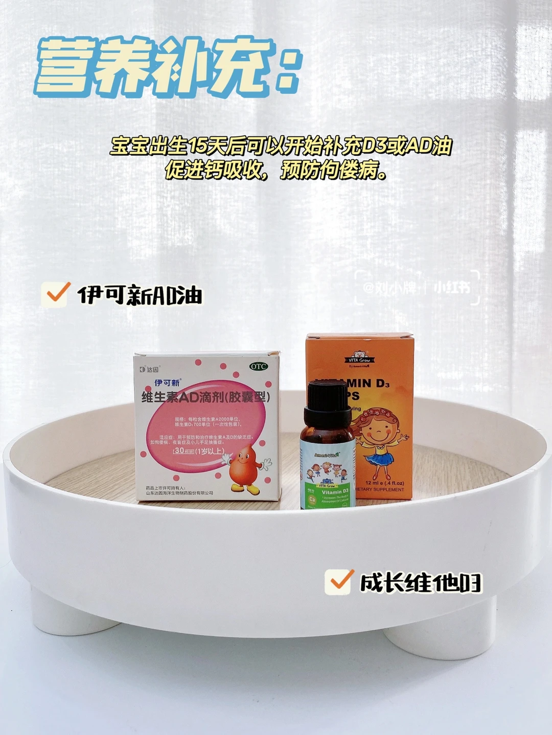 AD油和D3是出生15天后就要补充的,促进钙吸收。DHA出生14天可用,6个月后可以增加铁剂,预防贫血。