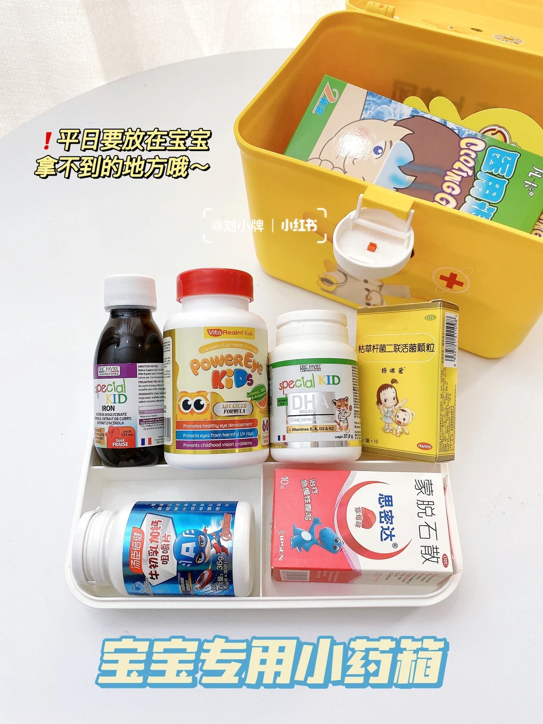 ⚠️Tips:宝宝的药品要放在一个专用的小药箱,平日放在宝宝拿不到的地方,以免误食。