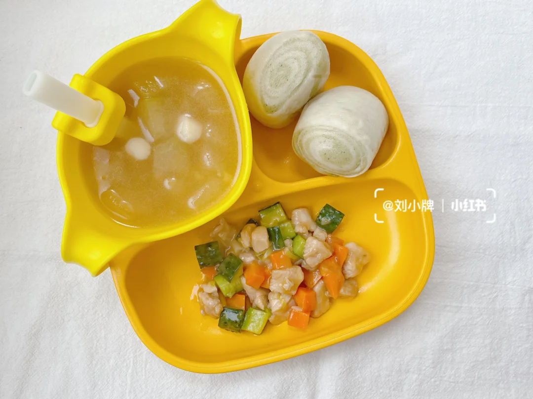 ▪️宝宝宫保鸡丁➕冬瓜瑶柱汤➕菠菜馒头