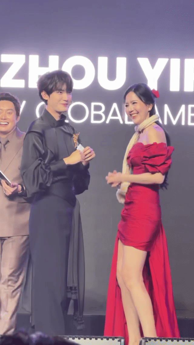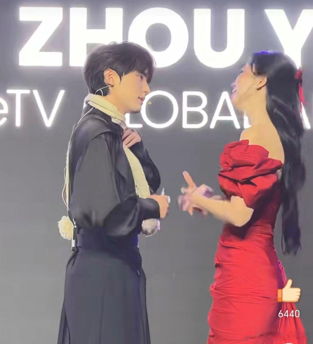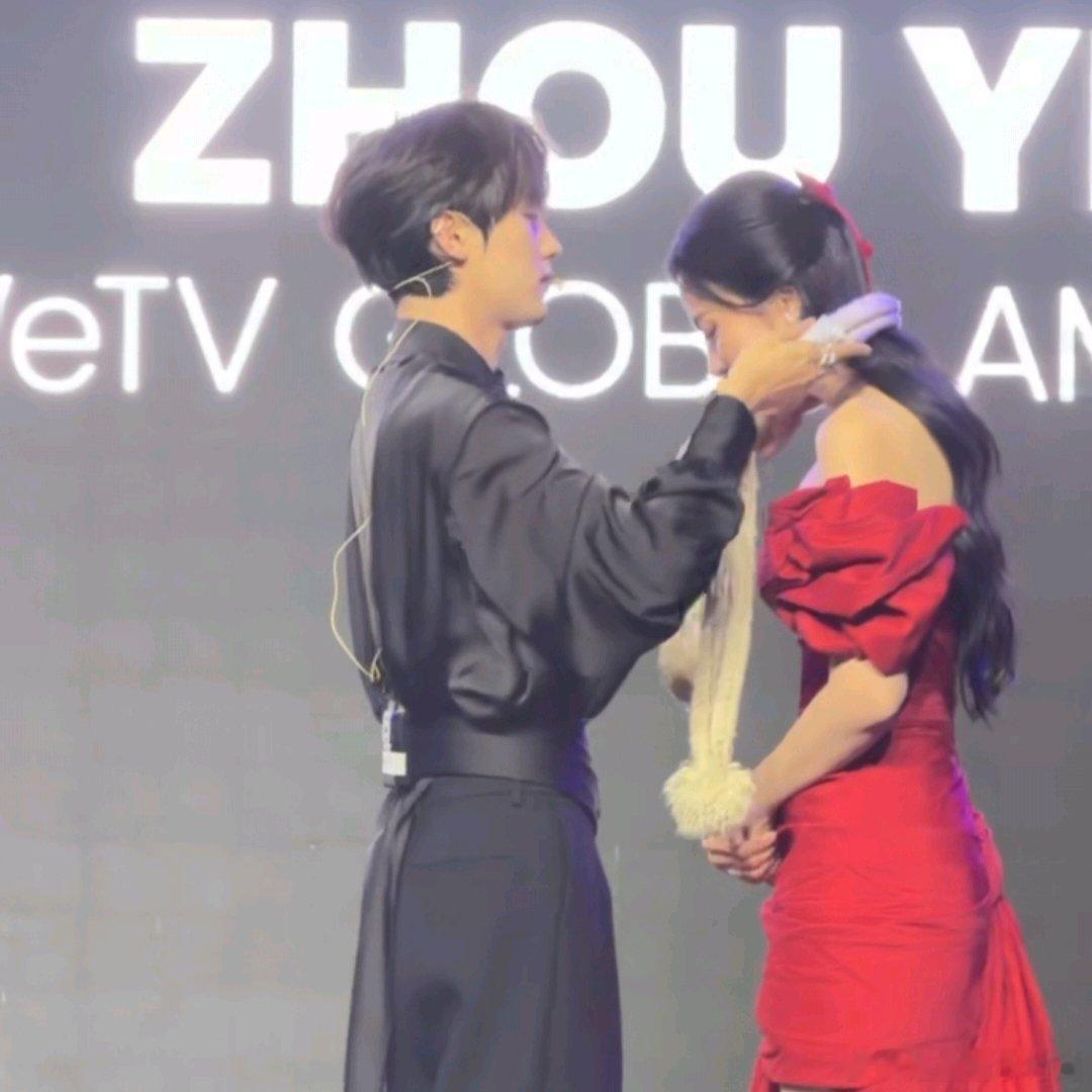 周翊然雅加达活动也太会了!直接还原《焕羽》里明盛送乔青羽围巾的名场面,把围巾亲手
