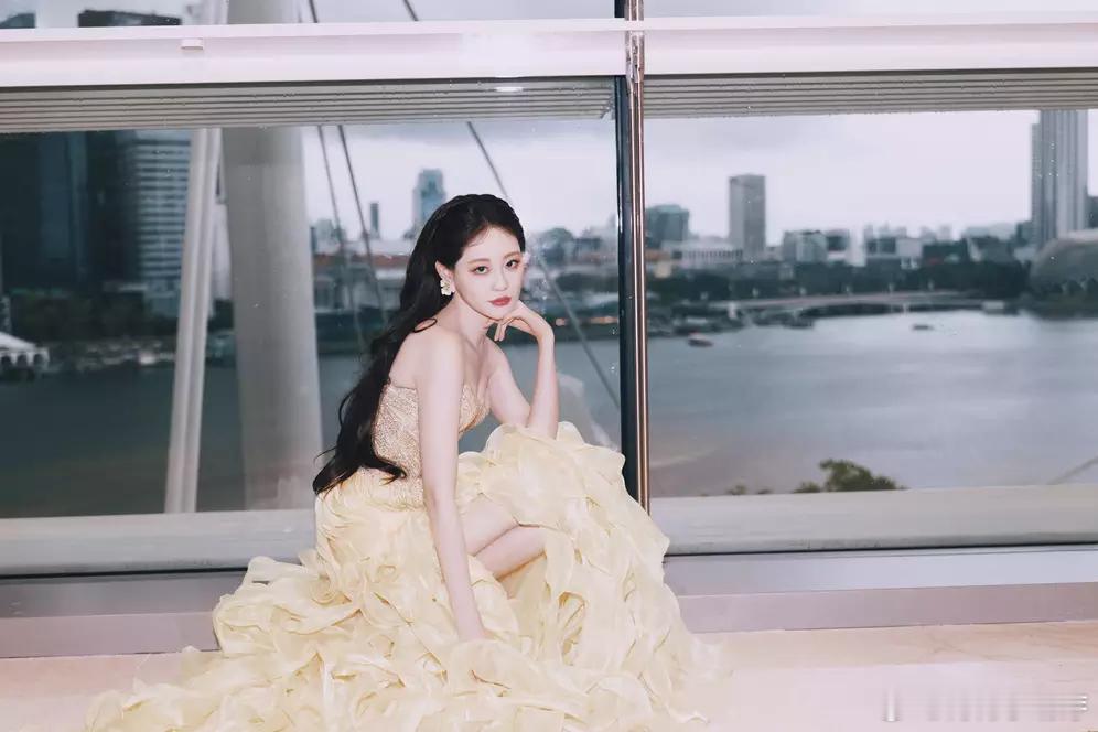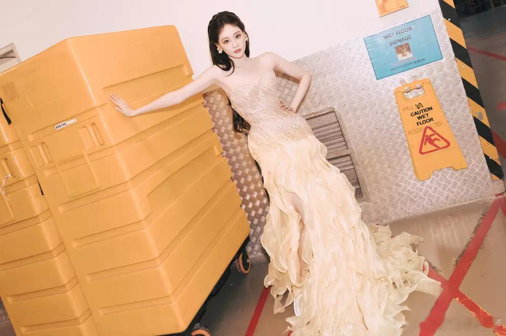 祝绪丹穿浅黄纱裙气质明媚娇俏, 表情生动宛如在逃公主