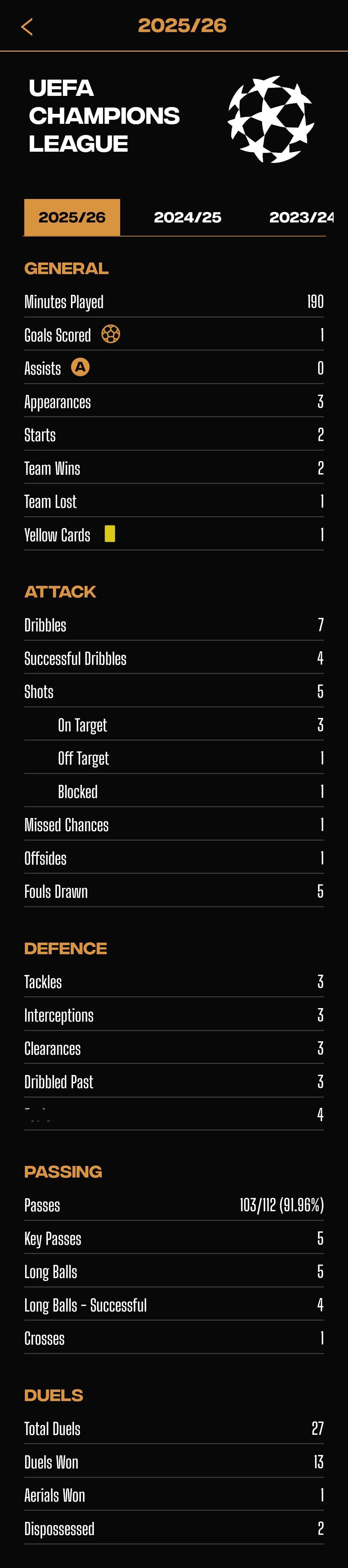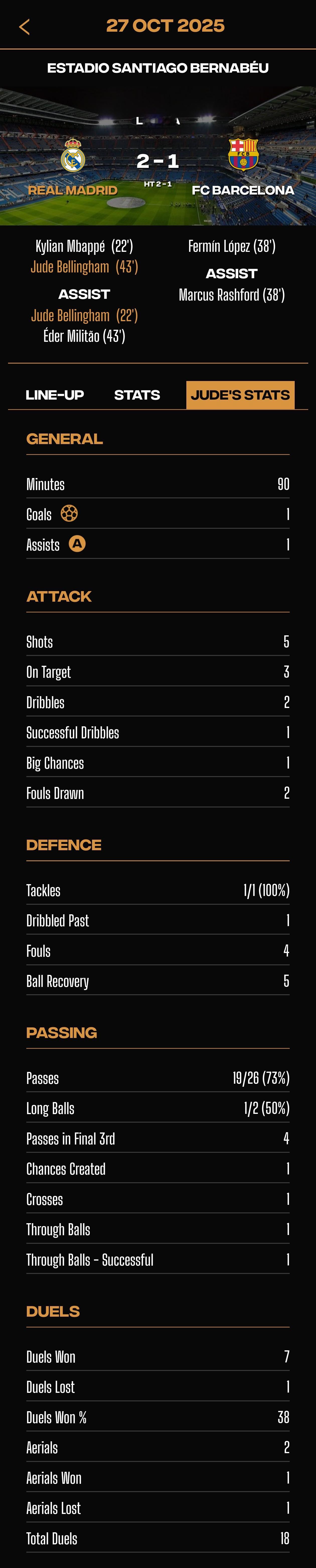 比赛的模块很细节,有每场比赛的具体阵型,全队数据,Jude个人的数据,全队信息会在Jude的部分重点标注。有正在参加的所有比赛,西甲、欧冠等的积分榜。有Jude个人在西甲、欧冠、世预赛等各项赛事的个人数据