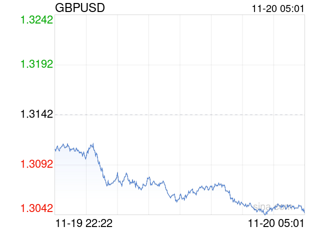 新浪外汇消息2025年11月20日,截至05时00分,外汇市场上英镑兑美元汇率跌破1英镑兑换1.3045美元。跌幅为-0.7381%