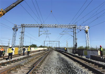 11月18日,由中铁二十三局电务公司承建的新建驻马店物流基地二期项目,武汉铁路局京广线马庄站经过45分钟三级封锁施工,顺利完成接触网改造硬横梁安装,为后续开通打下坚实基础。据悉,该项目计划于2026年竣工,建成后货物年发送量将增加30万吨,结合铁海联运的政策,将进一步提高铁路运量,带动周边经济发展。图孟铃棋文张立东
