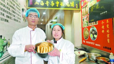 在家人的鼓励下,夫妻俩东拼西凑借来了3000元,在运城市盐湖区开了一家“宁记烧饼”店。