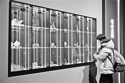 图为观众观看展览上的珍贵岩石矿物标本。