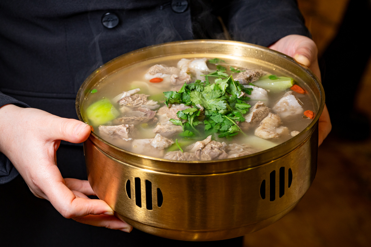 作为解家招牌菜的第10次更新,“青椒南湾大鱼头”选用南湾湖优质鱼头,搭配秘制青椒酱,鲜辣平衡、回味无穷,成为现场爆款;应季菜品“牛肚绷炖萝卜”以韧劲十足的牛肚绷搭配冬季甜香萝卜,小火慢炖、持续加热,一口下肚暖意蔓延全身;“麦片铁棍山药”选用霜降后采挖的温县铁棍山药,营养丰富,口感干面甜香,是女士和孩子的必点佳肴;最具创意的“和牛葱香烩面”,既坚守河南烩面汤鲜面筋道的传统精髓,又创新搭配和牛,以现代方式诠释经典,让老味道焕发新活力。