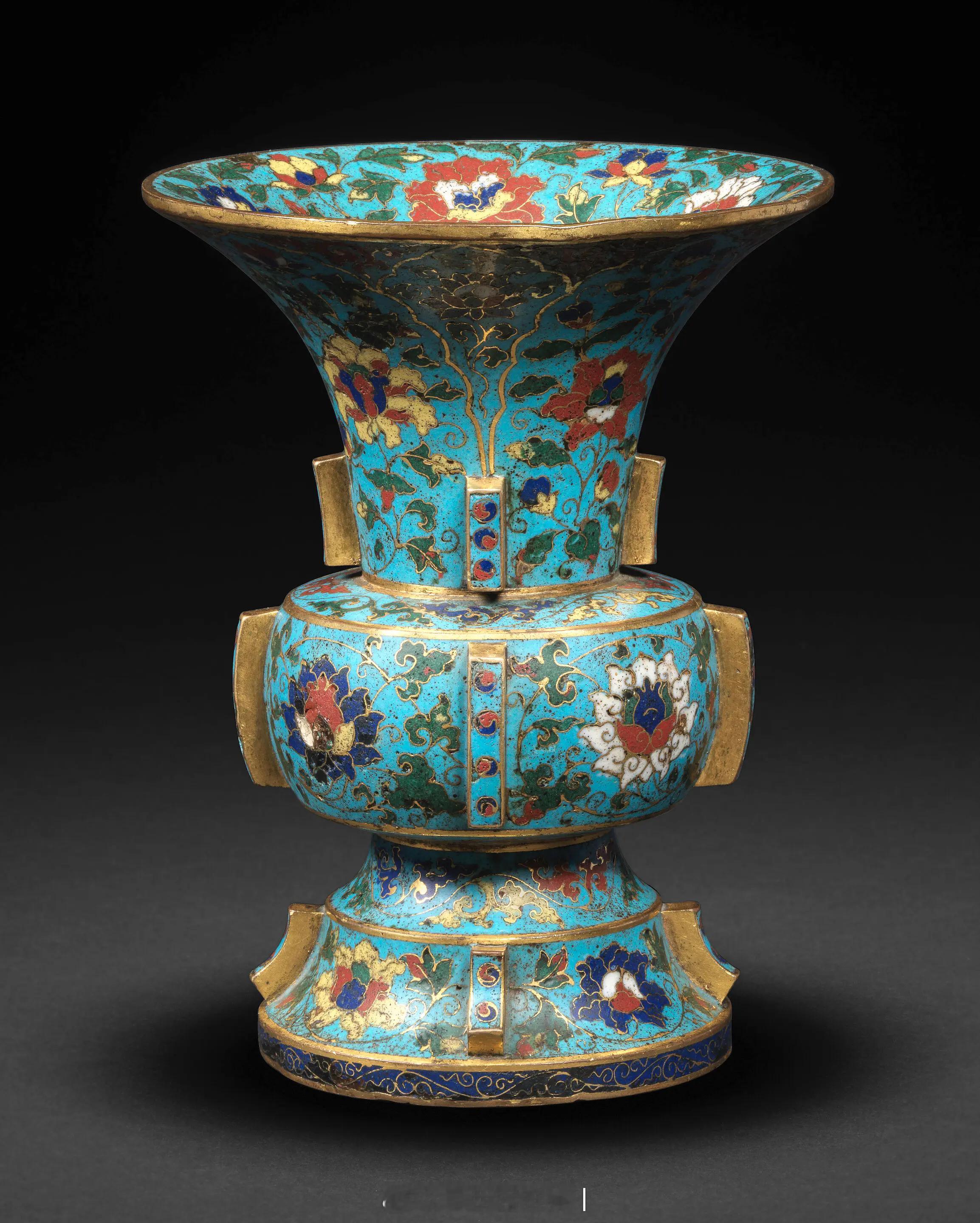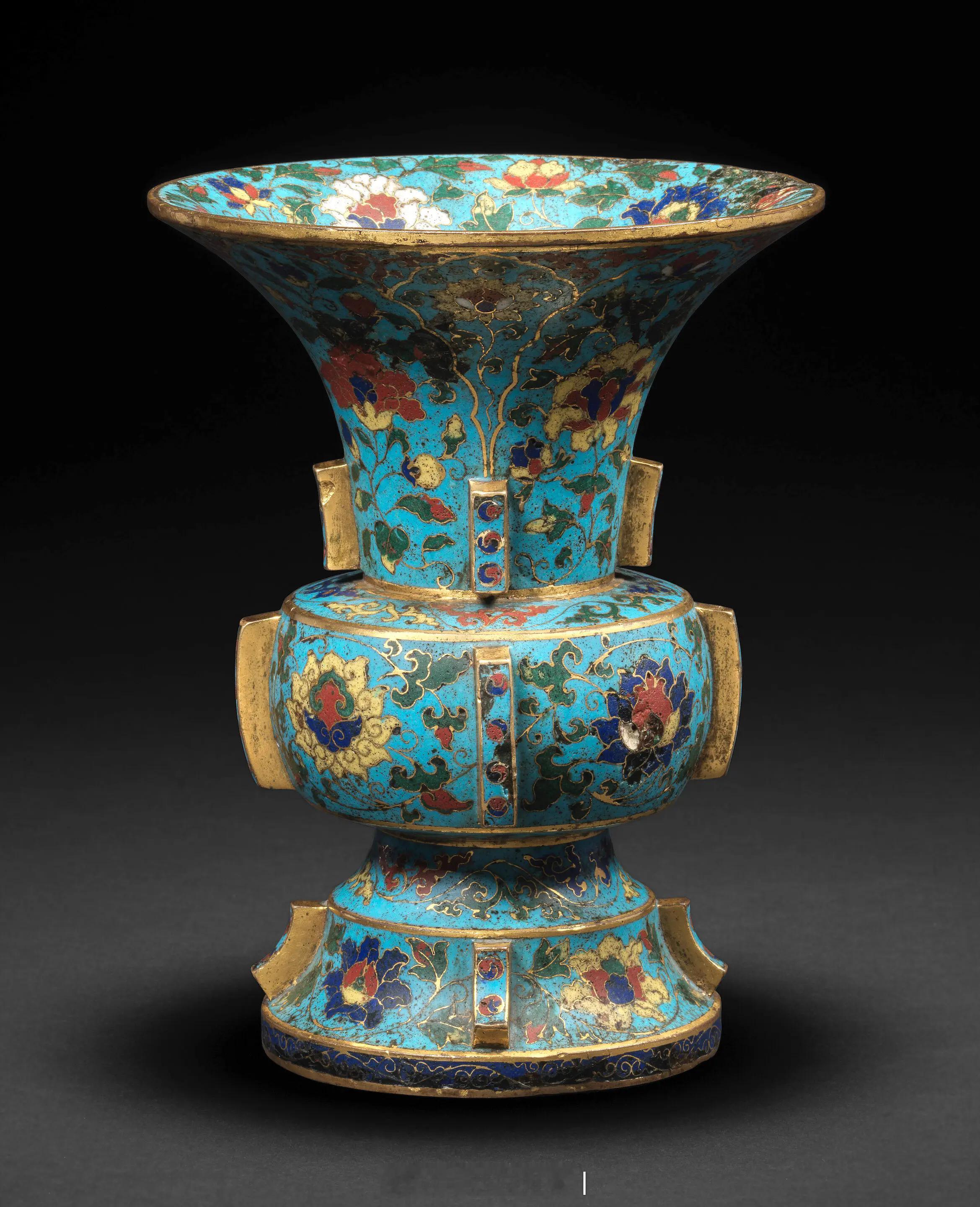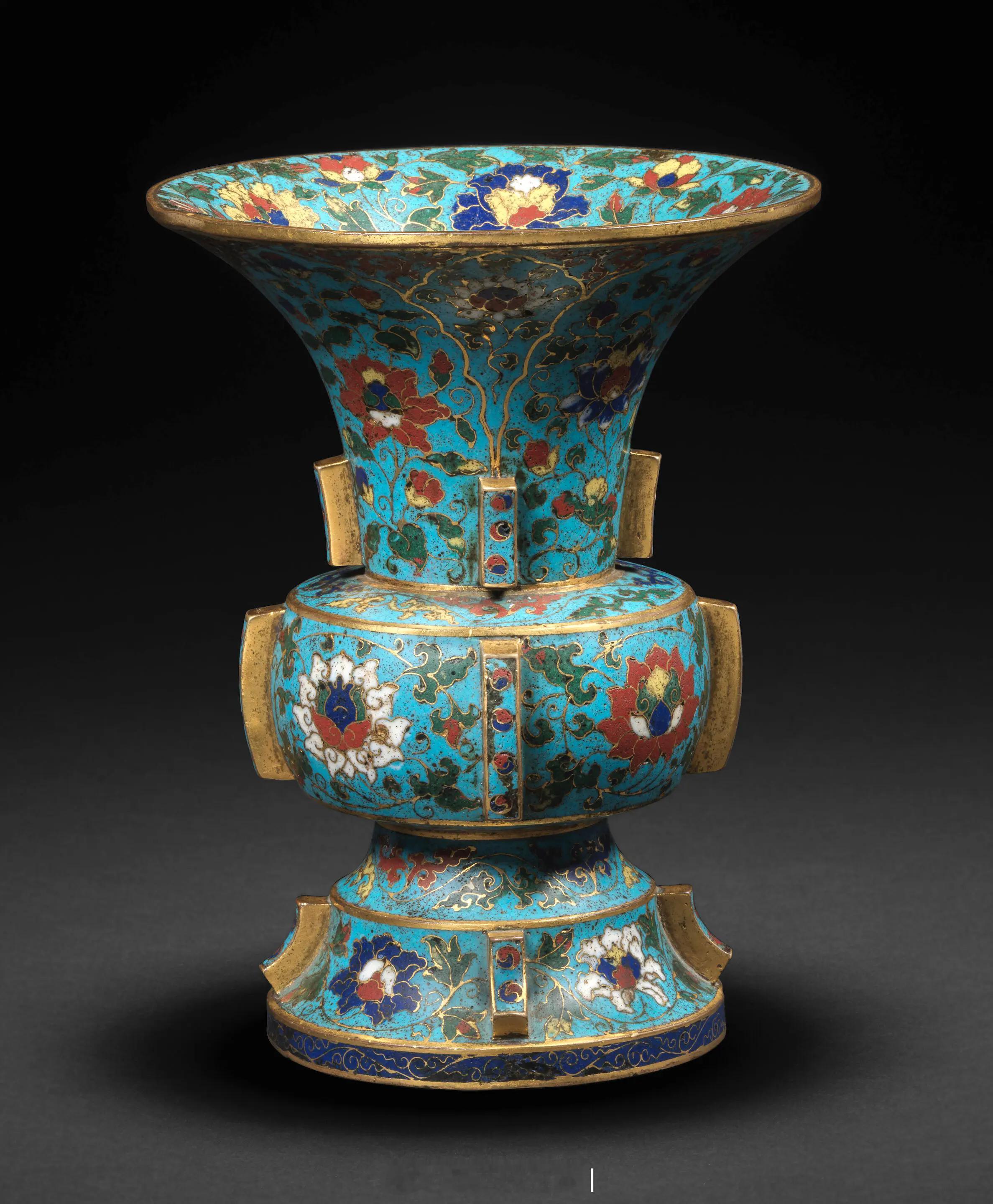 明宣德 铜胎掐丝珐琅缠枝花卉纹出戟尊尺寸:18.5cm来源:伦敦邦瀚斯2025秋拍《觉是轩:中国艺术三十载(1994–2025)》