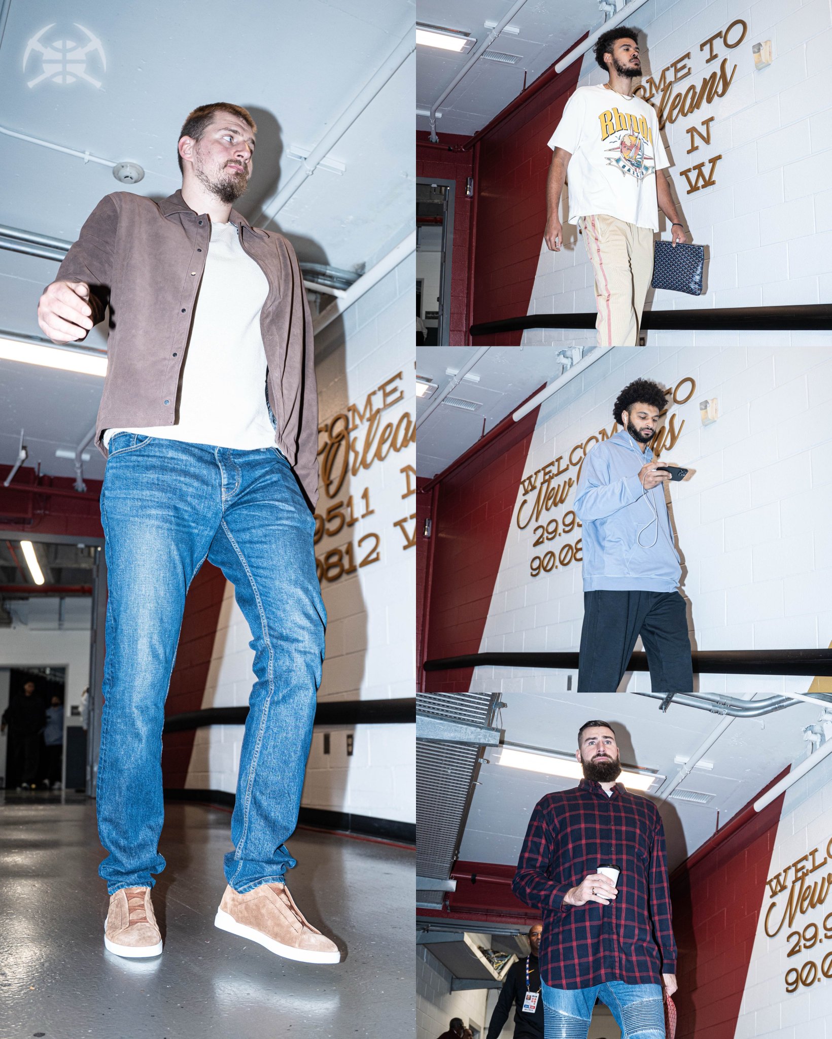 赛前,掘金社媒晒出球员们步入球馆的瞬间,尼古拉-约基奇身穿休闲服饰步入比赛场馆。