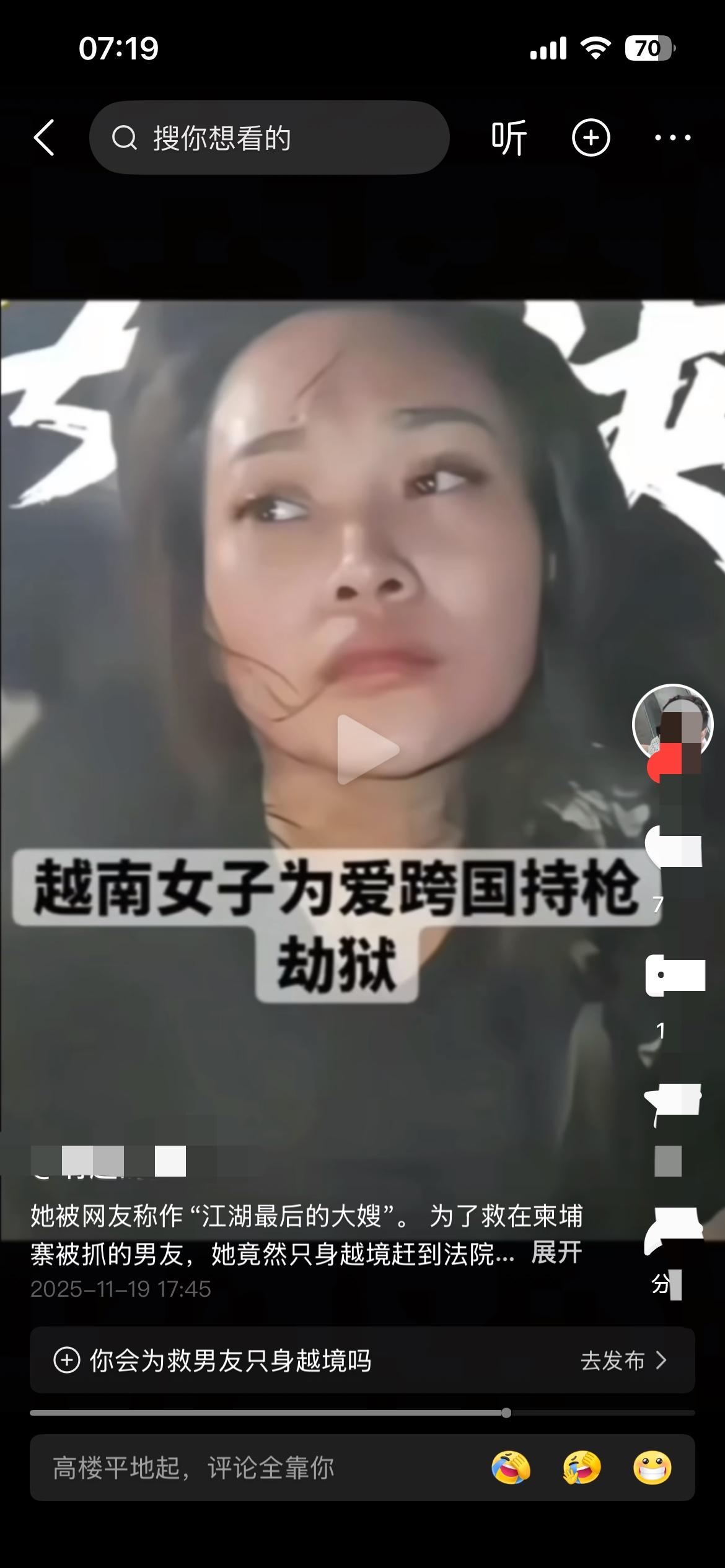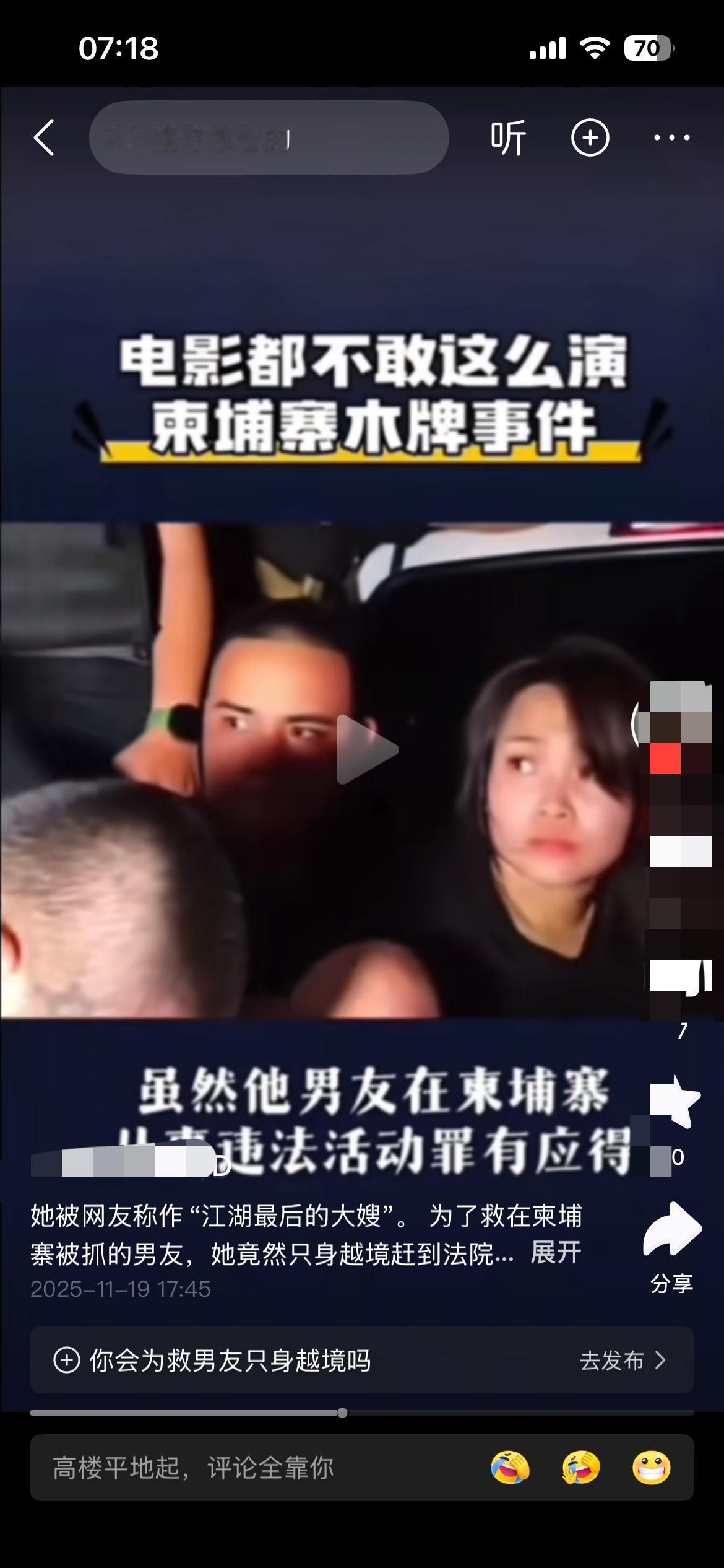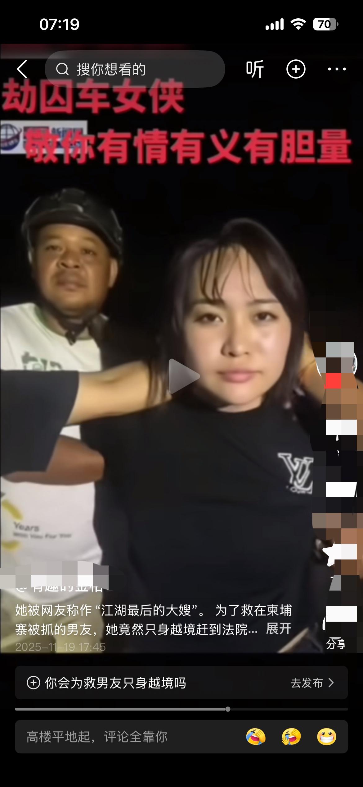“电影都不敢这么演!”柬埔寨木牌法院门口,一个穿黑衣的女人站在人群里,手指无意识地摩挲着外套口袋——那里藏着一把上了膛的手枪。当囚车的铁门哐当打开,她几乎是瞬间冲了过去,把枪塞进穿橙色囚服的男人手里。男人接枪的瞬间,周围的警察还没反应过来,他已经带着另外五个囚犯窜上一辆越野车,引擎轰鸣着消失在路口。 这不是港片里的经典桥段,而是2025年11月18日真实发生的劫囚现场。被网友称为“江湖最后的大嫂”的越南女子冯静,为了营救因电诈和贩毒被捕的男友阮依豪,单枪匹马闯进柬埔寨法院。她的故事,比任何剧本都更具戏剧张力:逃婚的壮族姑娘、被卖进诈骗园区的受害者、为爱情孤注一掷的“大嫂”,每一个身份都在撕裂中迸发出惊人的能量。 阮依豪被押下车时,手腕上的手铐是自己提前藏好钥匙打开的——这场劫狱显然是一场精心策划的行动。冯静递枪的动作干脆利落,完全不像一个普通女子,更像是训练有素的犯罪成员。可当他们的车一头栽进泥坑,被柬埔寨警方连夜抓获时,她面对镜头却异常平静,甚至带着一丝“完成任务”的坦然。 网友把她捧成“东南亚第一深情”,但很少有人深究:阮依豪是诈骗园区的主管,手上沾着多少受害者的血泪?冯静递过去的那把枪,又会在未来制造多少恐慌?在木牌这个东南亚犯罪的灰色地带,爱情被包装成浪漫的遮羞布,掩盖了跨国犯罪的残酷真相。就像她口袋里的枪,冰冷的金属光泽下,是对法律和生命的双重漠视。 当这场现实版“天若有情”落幕,留在泥坑里的除了报废的越野车,还有对“江湖义气”的荒诞想象。我们该为奋不顾身的爱情感动吗?或许更该清醒:有些深渊,哪怕为爱跳进去,也换不来救赎,只会让自己和更多人一起沉沦。柬埔寨案件