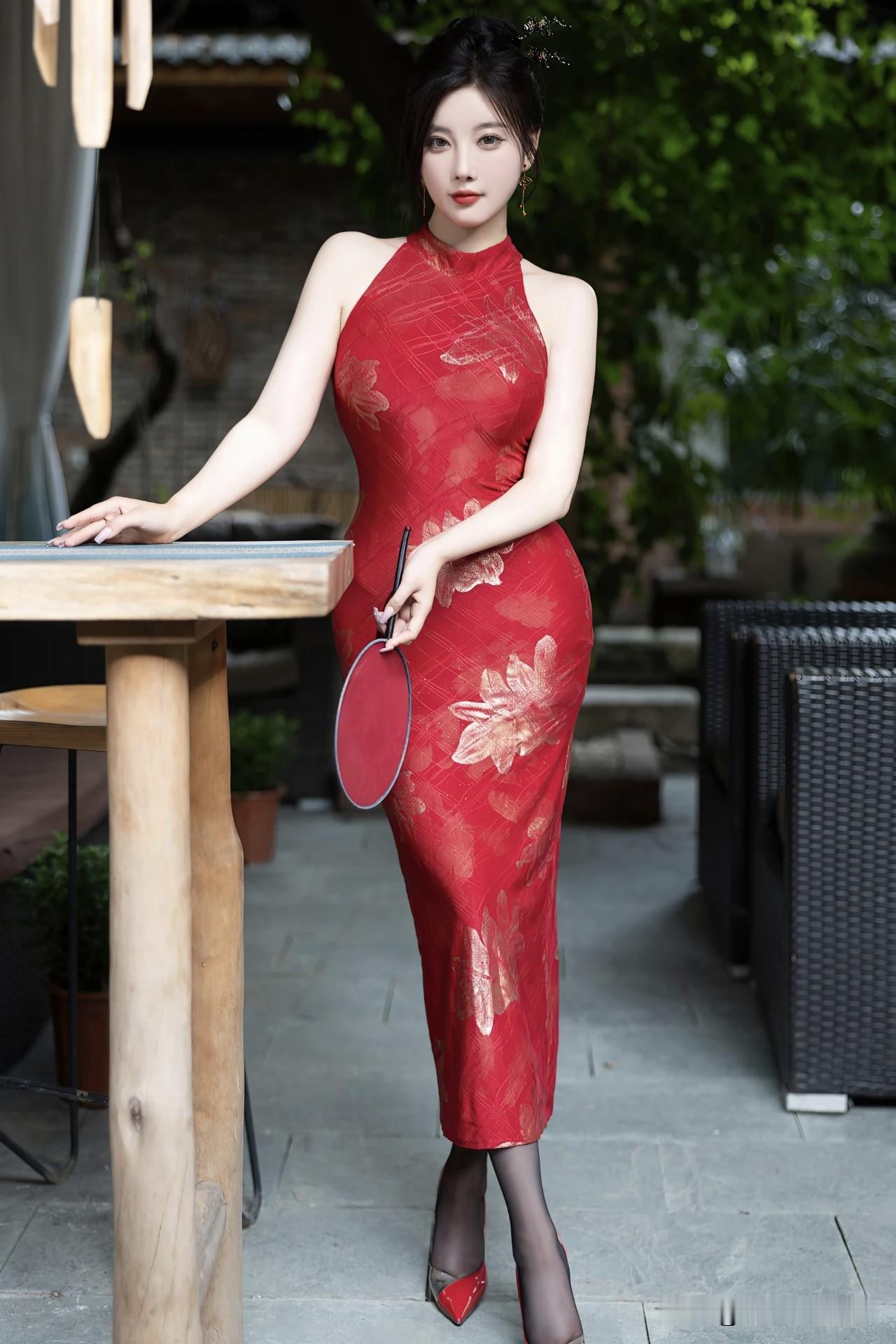 红黑配旗袍黑丝大长腿,这腰臀比真得绝了!