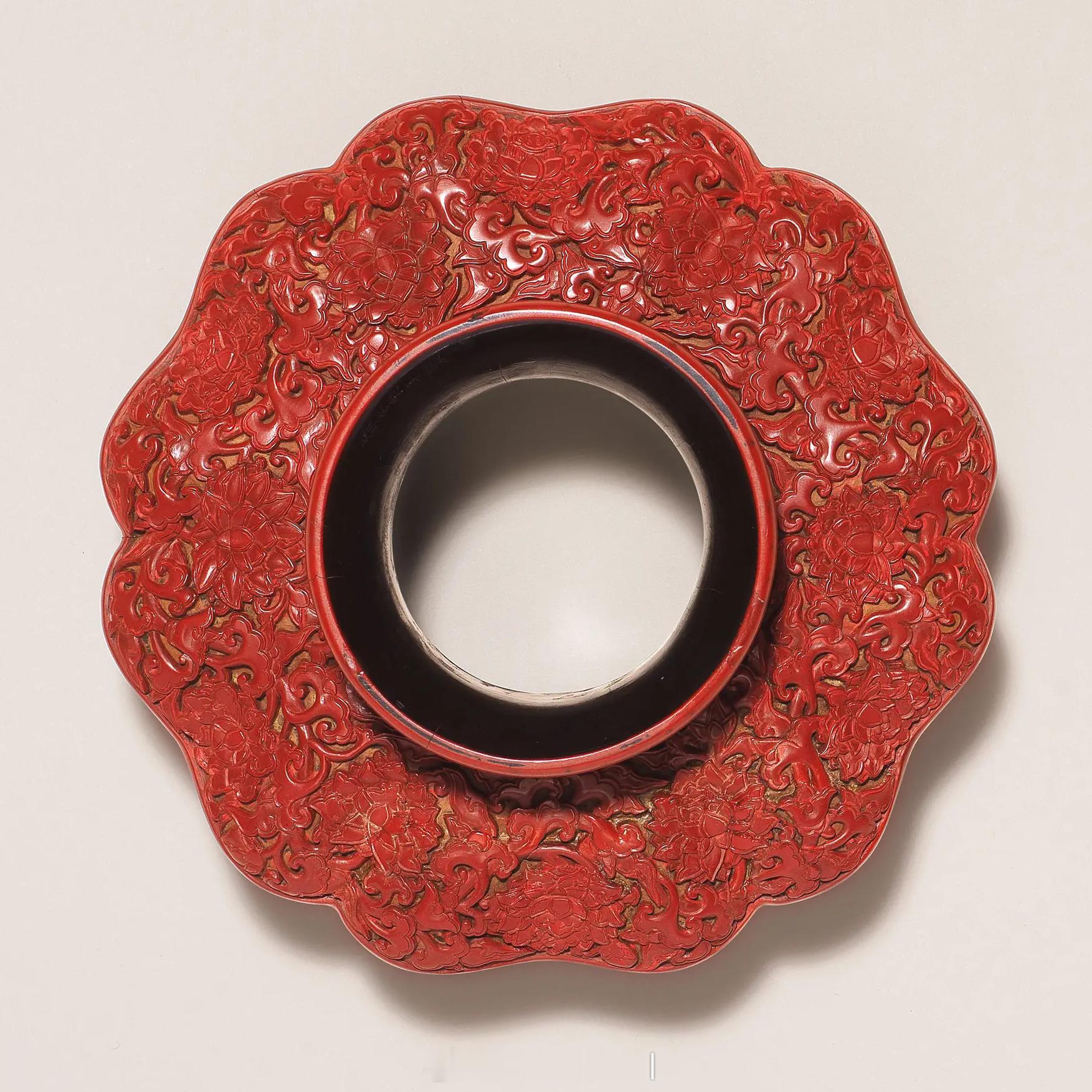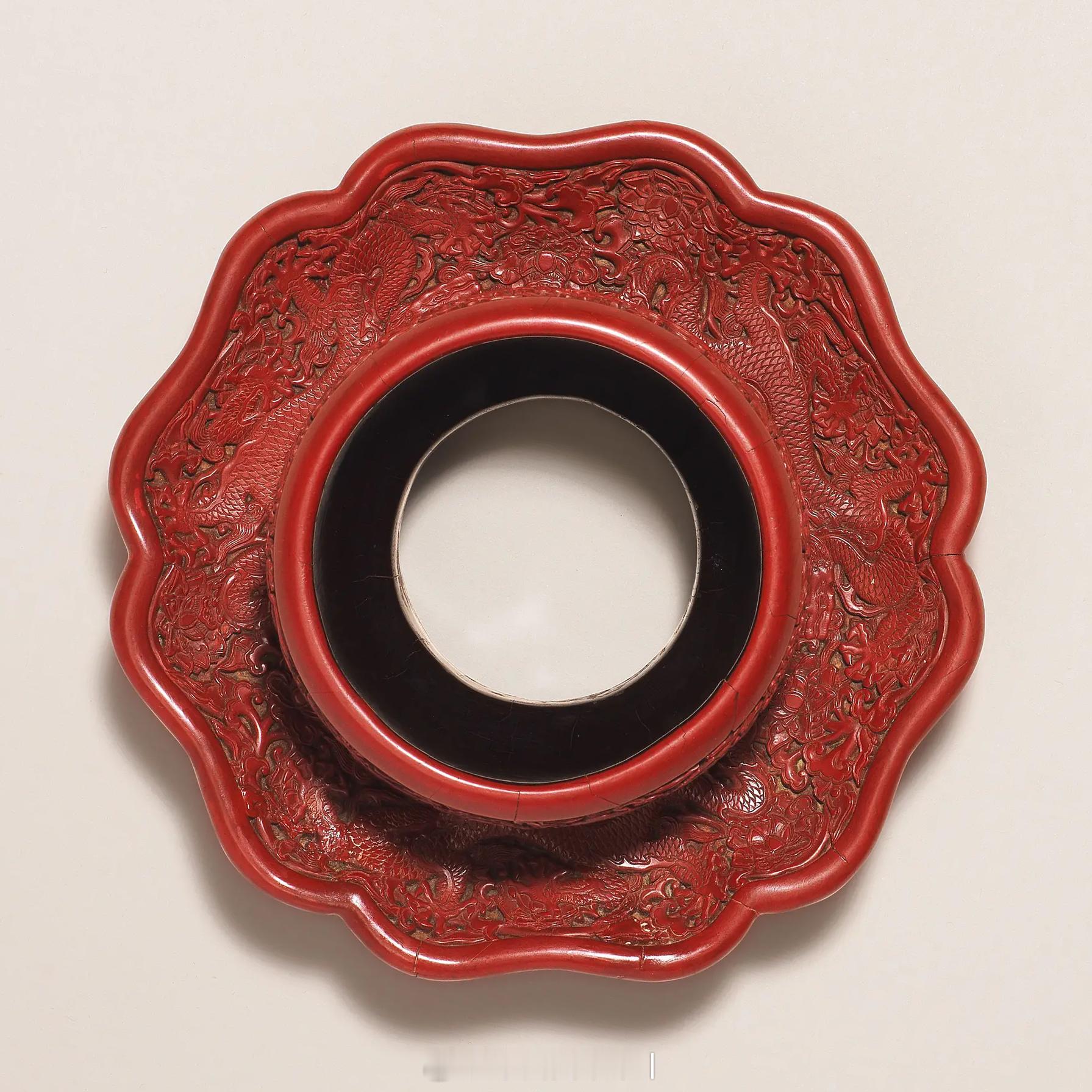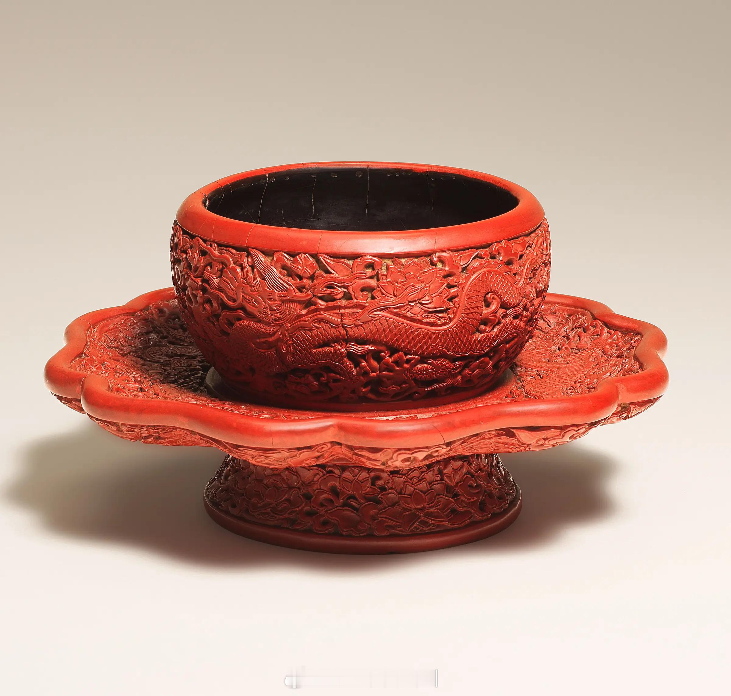 髹饰录 | 明永乐 剔红穿莲龙纹盏托「大明永乐年製」楷书刻款尺寸:直径 16.5
