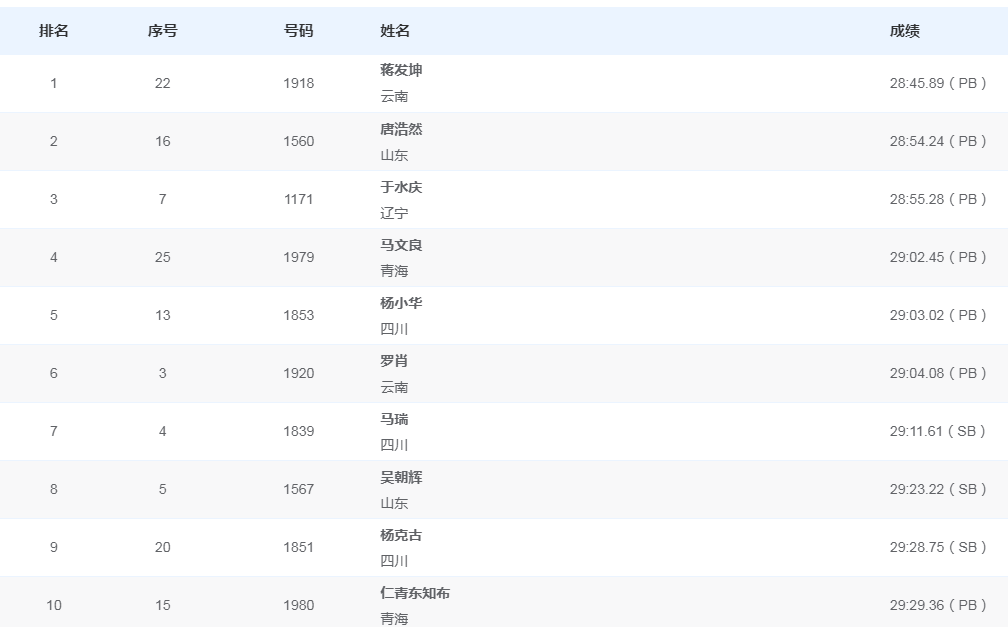全运会男子10000米:蒋发坤PB夺金,唐浩然于水庆分列二三