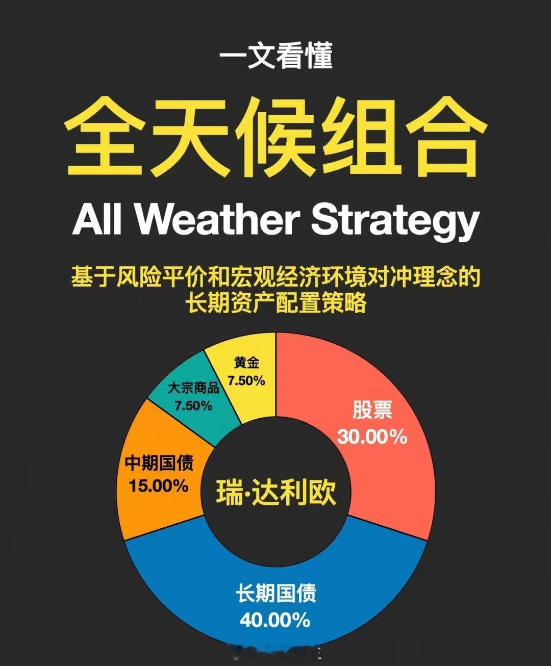 今天聊聊投资里的“安全感”——黄金配置。为何别重仓,但必须留它一席之地?桥水基金瑞达利欧的“全天候策略”,把黄金放进资产配置拼图。经典组合里它占7.5%,普通人按风险偏好,5% - 15%区间浮动。为啥?黄金本质是“经济天气”里的雨伞 它帮你稳住组合基本盘,这是长期价值。但重仓就跑偏了!黄金不是暴富工具,重仓会打乱收益节奏,牛市会错过股票、新兴资产的增长机会。而且,别迷信“只涨不跌”,黄金也会波动,10月重仓all in的人最近可不好受。但全天候组合里的股票,对很多人来说操作又有难度,所以国内现在基本流行用更接地气的“新三金”来配置,货币基金、债基做底仓,黄金基金求赚,或是再搭配些指数基金以免牛市吃不到肉。,总之不管是全天候策略还是新三金,关键都是要做好分散配置。