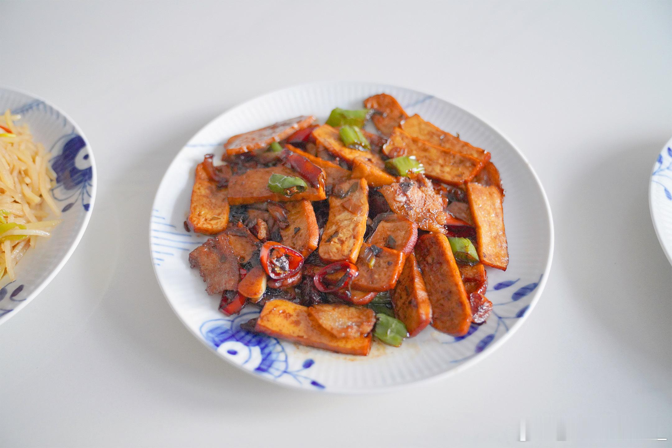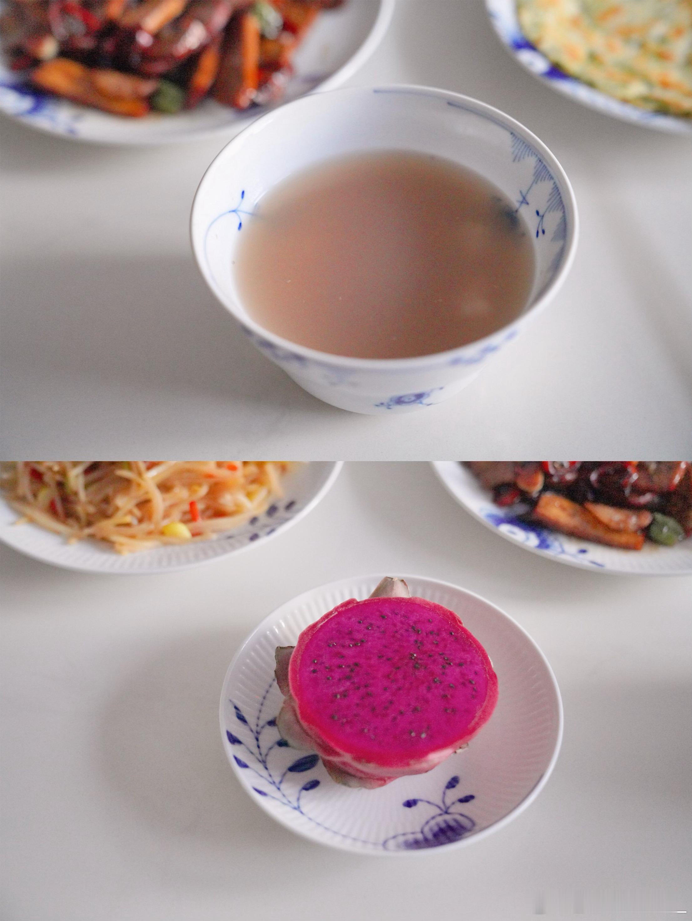 周四早饭香干炒腊肉、炒土豆丝、手抓饼、山药粥、火龙果~