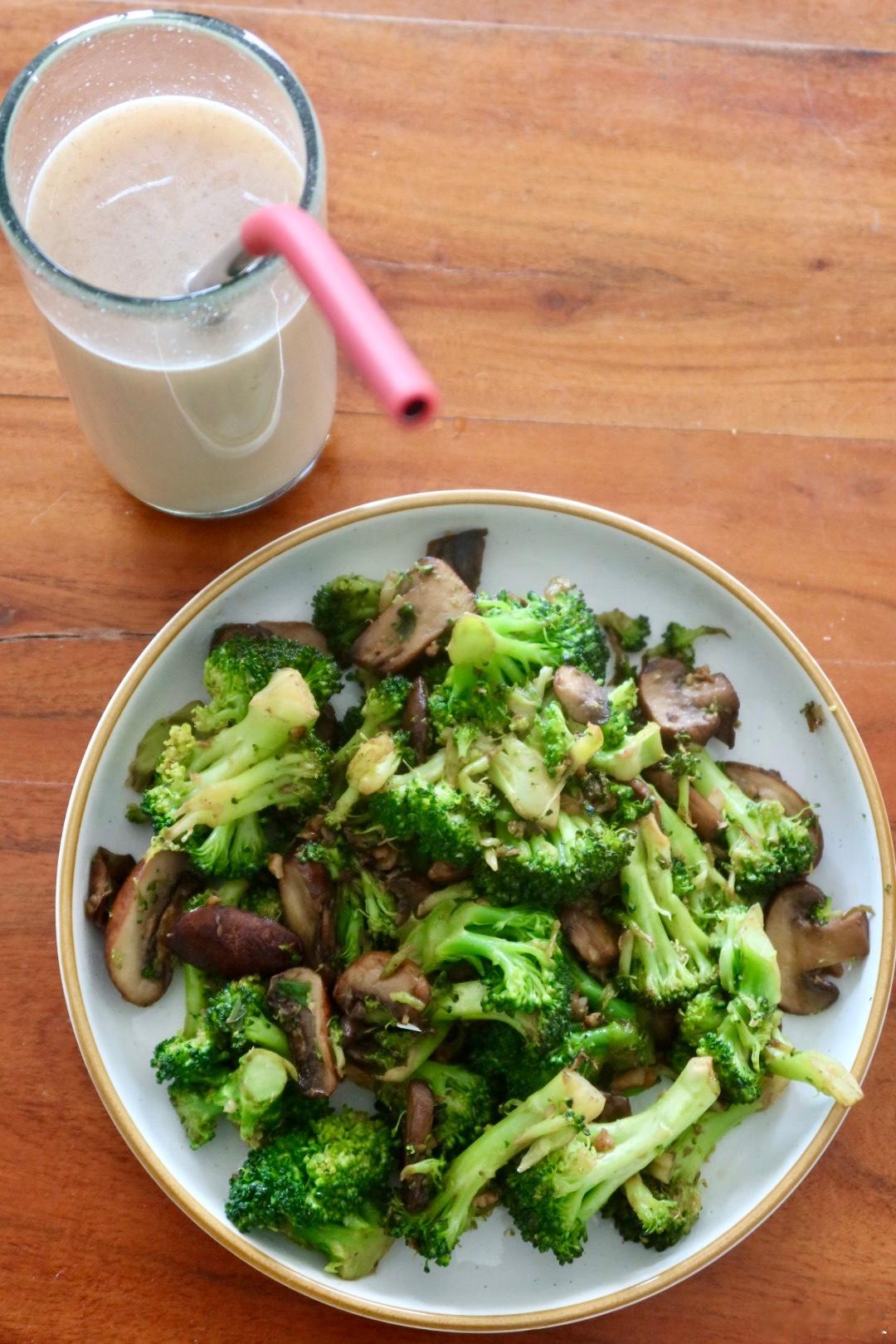 抗炎饮食day85✅今天又摄取了很多膳食纤维早餐:温水冲山药粉、西蓝花🥦炒口蘑