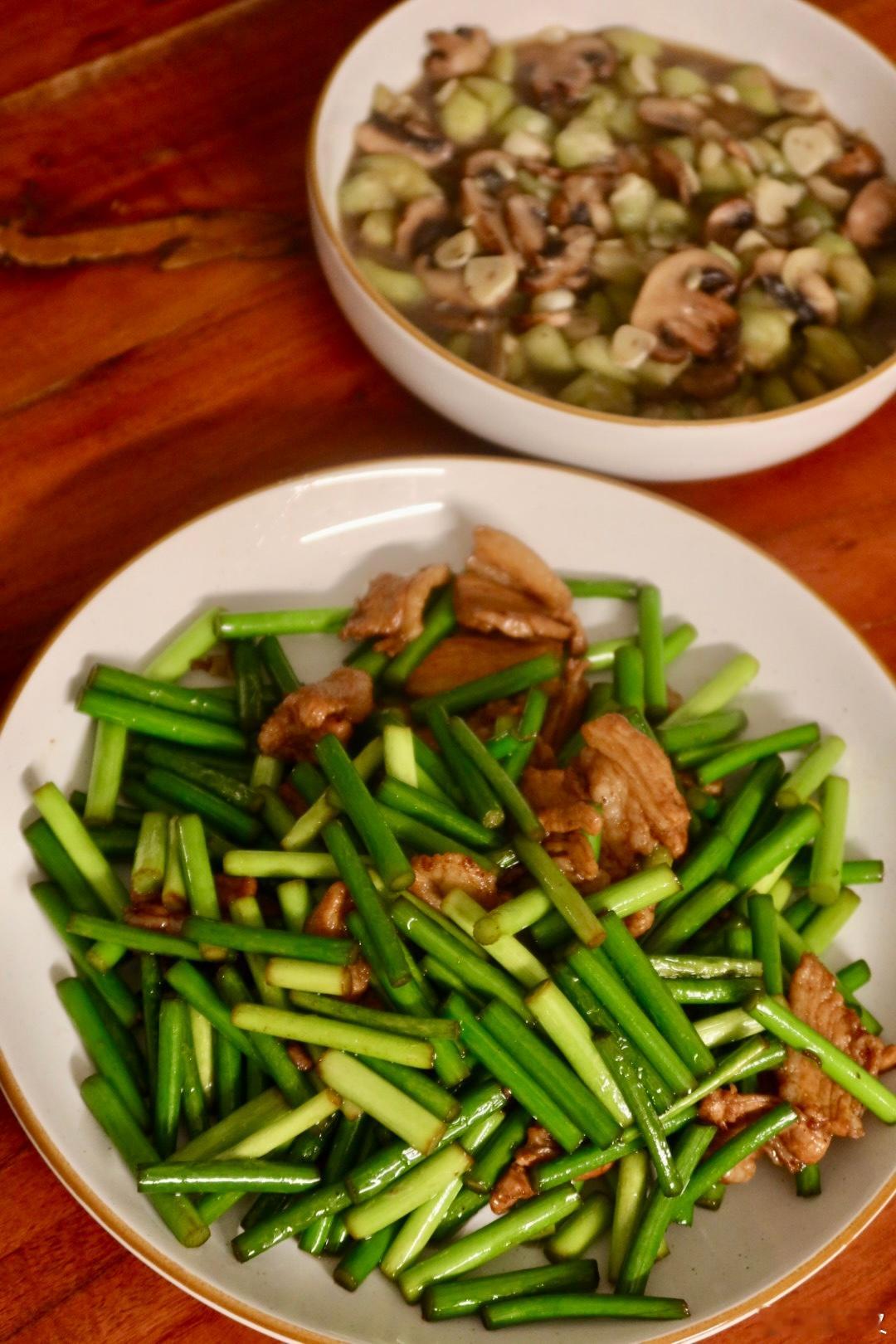 抗炎饮食day85✅今天又摄取了很多膳食纤维早餐:温水冲山药粉、西蓝花🥦炒口蘑午餐:烤紫薯、石榴银耳百合莲子羹晚餐:丝瓜炒口蘑、蒜薹炒五花肉,好久没在美国买到不老的蒜薹了!(要求真不高