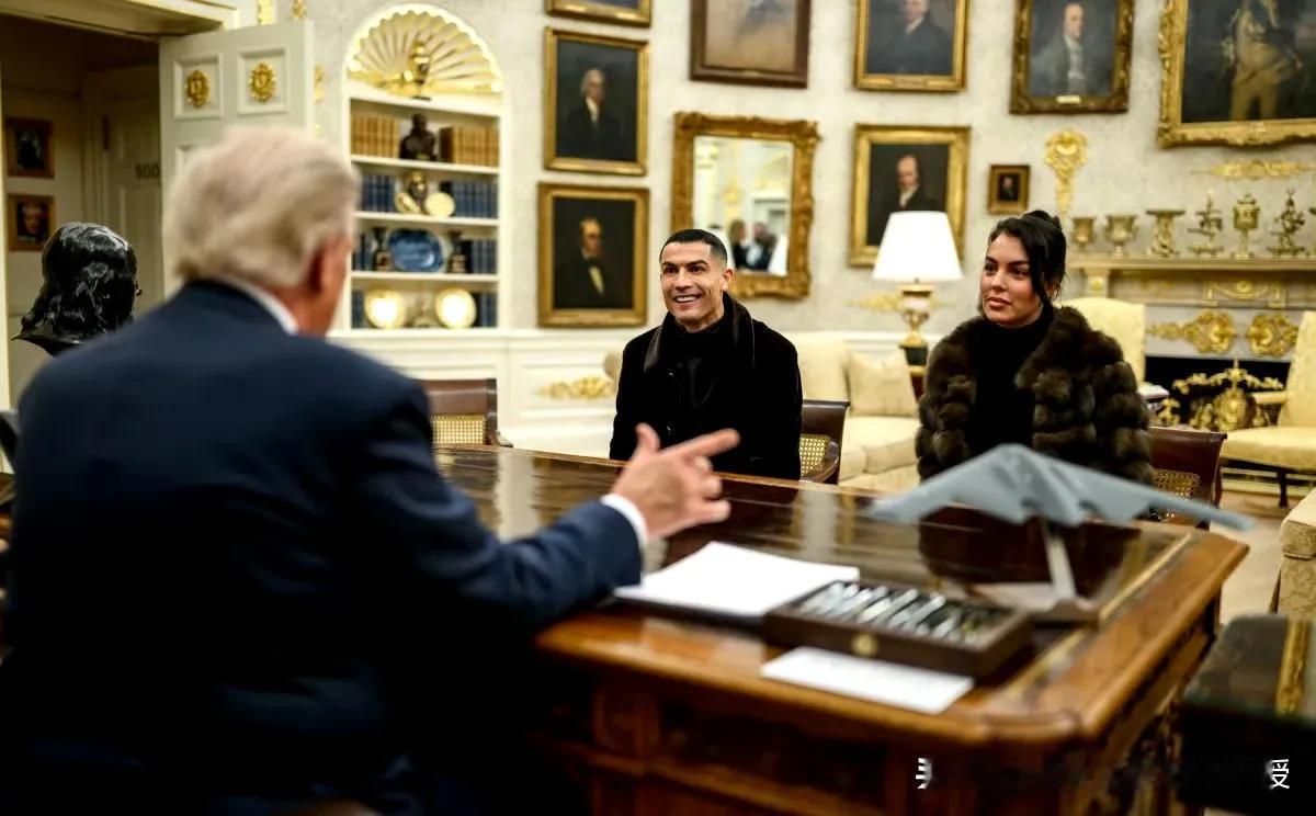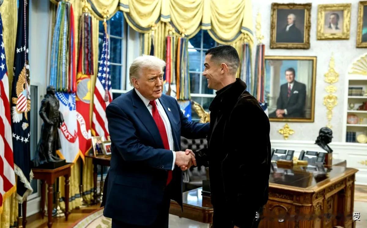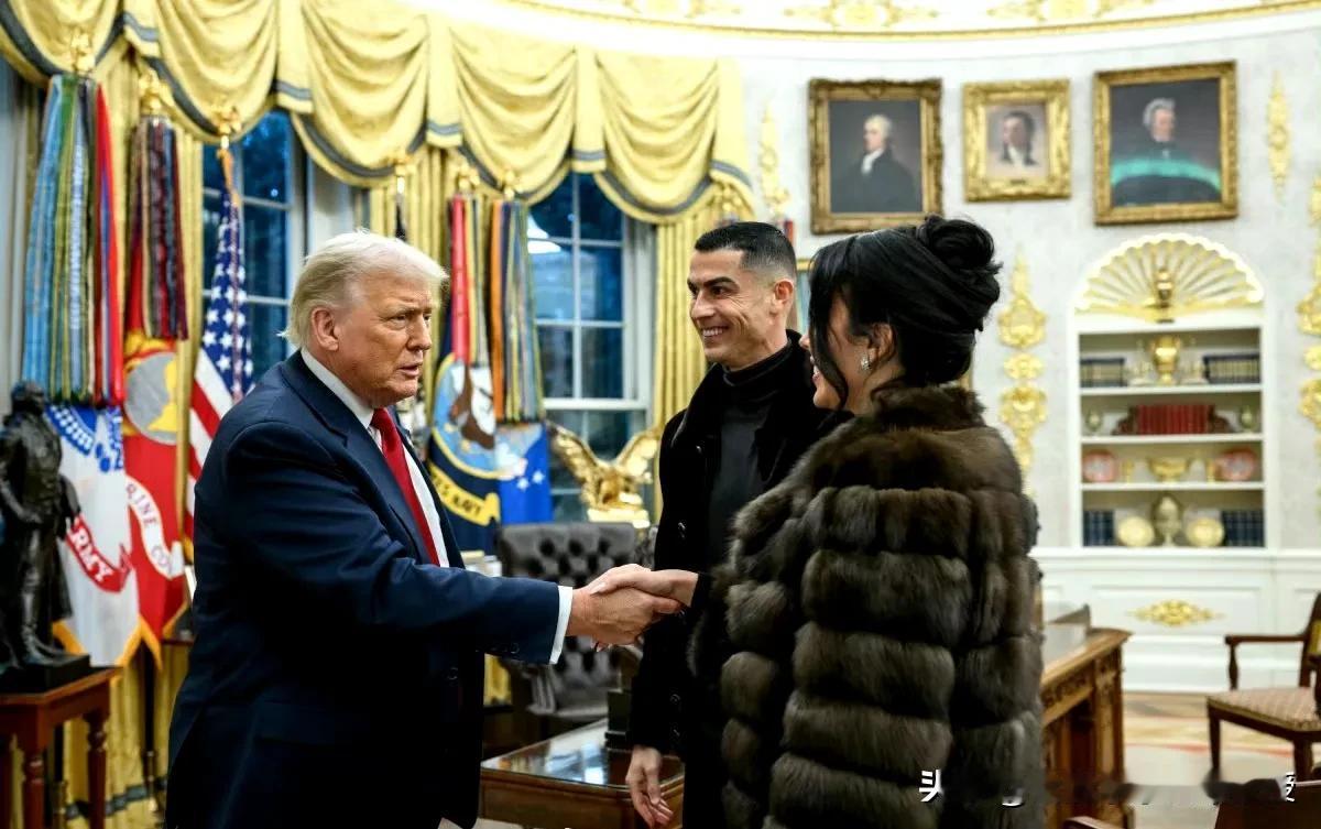 球王梅西没做到的,C罗做到了!谁也没想到,沙特王储赴美给特朗普送万亿美元大礼还带上了在沙特踢球的C罗一家,更没想到的是,特朗普还在自己办公室单独接见了C罗和他未婚妻,还赠送给他们跟马斯克一样的“金钥匙🔑”。好像沙特整个赴美行程中,让特朗普接见C罗才是最重要的环节。 球星能获得这样的待遇是史无前例的,C罗笑开了花。特朗普说自己的小儿子巴伦是C罗铁杆球迷,这次亲自接见C罗,以后儿子都要更尊重他了。 特朗普是懂流量的,C罗的球迷来自世界各地,放下总统的身段接见C罗是体现亲和力的最佳表现。