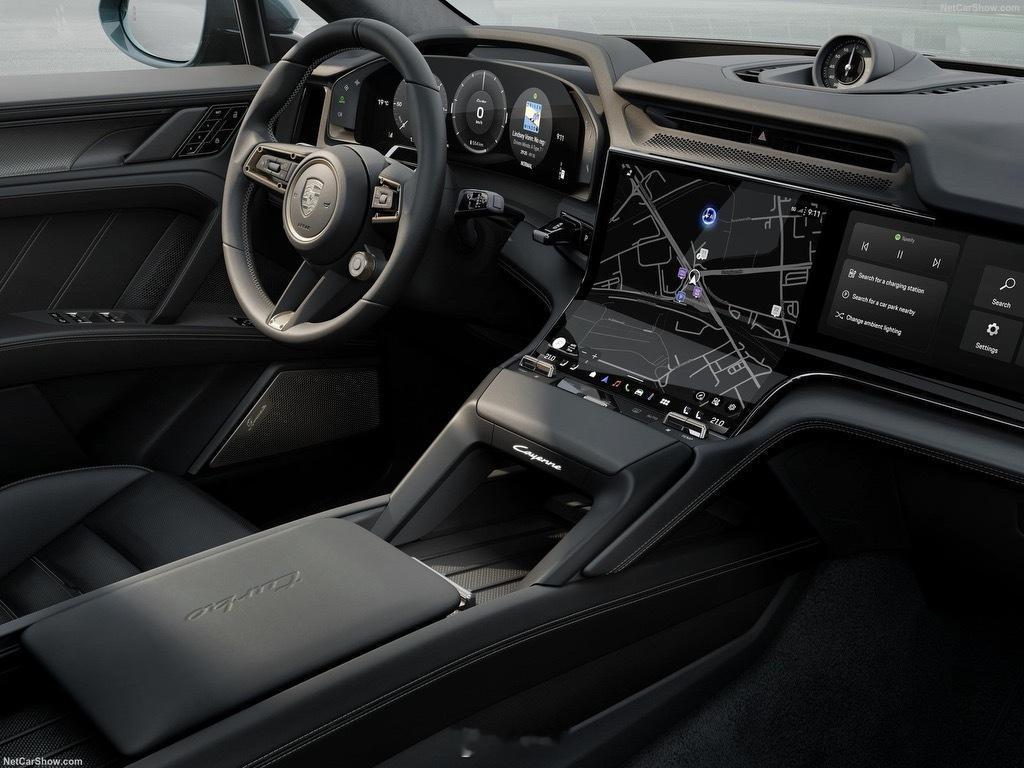 史上最强量产保时捷发布亮点有点多:Turbo车型+超增压模式最高1156 马力(日常默认模式857马力),史上最强量产 Porsche无疑了。0–100 km/h:2.5 秒0-200km/h:7.4秒极速260km/hFormula E 等级的 600 kW 能量回收,日常 97% 刹车都由电机完成。Turbo车型全新的油冷后轴电机,带来更高连续功率输出,受益于赛车技术的下放。113 kWh 新电池,最长续航642 km(WLTP),CLTC下大概率破700km了。800V 超快充最高功率 390–400 kW,10 → 80% 只要 16 分钟,10分钟基本能补进315km左右的续航。支持感应式11kW无线充电(适合有车库的车主选装),停上去自动开始。底盘方面标配空气悬架 + PASM。可选 后轮转向、PTV Plus、Active Ride 主动悬架。动态、越野、长途舒适性全覆盖。外观更低的机盖 + 一体式 Matrix LED,营造运动感。图9 PAA主动空气动力学,连同车头气帘和后扰流板,创造0.25的风阻系数,同级最优之一。可选越野套件,提升接近角与强度。对比现款卡宴,车长+55 mm、轴距+130 mm。后排空间更宽裕,座椅支持电动调整(靠背角度+座垫前后)。装载能力:781–1588升的后备箱+ 90升前备箱。拖拽能力最高 3.5 吨。车内全新 Mood Modes:座椅、灯光、空调、音效联动调节。独有的面板加热,座椅、扶手以及门板均有热感,且温区更均衡。史上最大 Porsche 显示区域:曲面 Flow Display + 14.25英寸仪表 + 14.9寸副驾屏(选装)+ AR HUD(10米等效 87 英寸)。音量以及空调组件继续保留实体按键,且针对动态驾驶下的精准交互需求,引入腕部支撑结构(图6)个性化方面13 种车色、9 款轮毂、12 种内饰组合。PTS、Sonderwunsch、专属腕表全放开。燃油卡宴成绝唱了吗?并没有。未来十年内,Cayenne 仍会继续保留燃油与插混版本,与纯电并行。百万级别的电车对决,突然变得真刀真枪了起来
