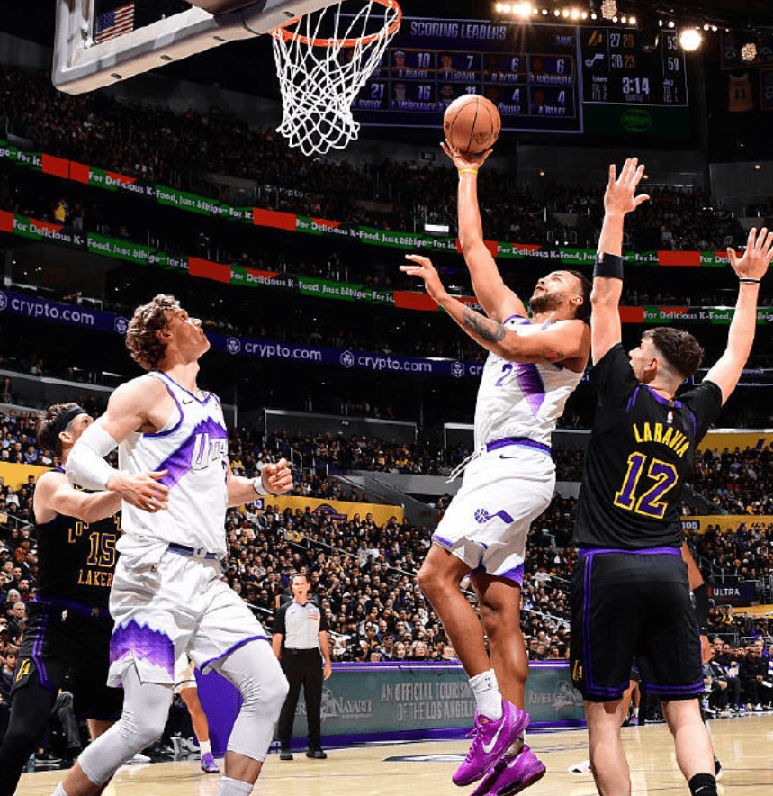 虎扑11月20日讯今日,爵士球员李凯尔更新社媒,回顾昨日对阵湖人精彩图集。