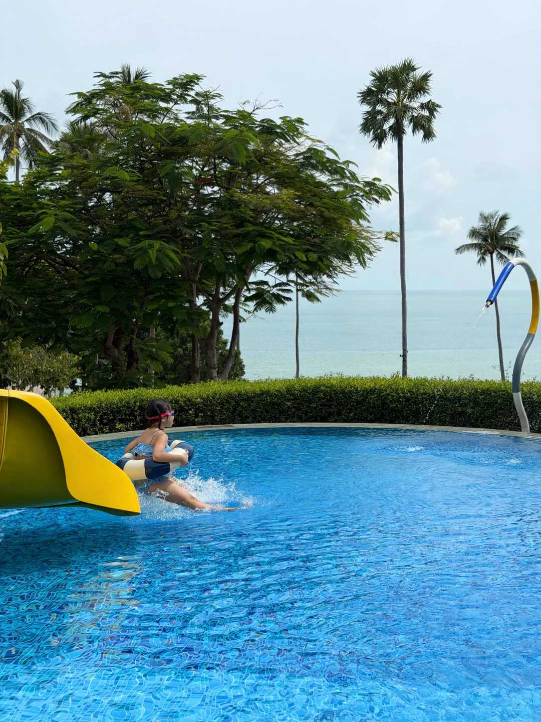 3️⃣亲子项目丰富,有儿童戏水池、滑滑梯、儿童俱乐部每天活动也很丰富,还有泰拳体验。