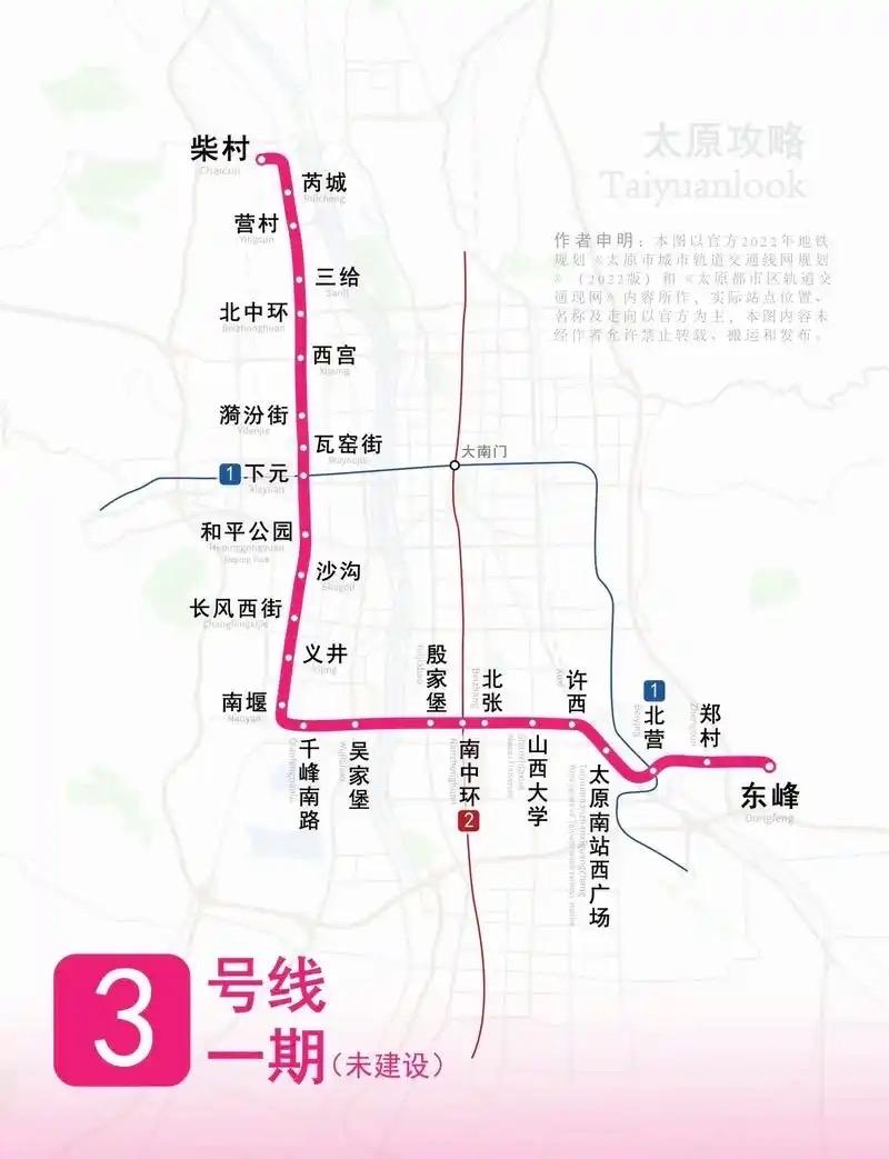 太原地铁3号线 太原地铁3号线真的太让人期待了!它现在处于建设规划报批阶段,2026年就要正式开工。 线路呈“L”形分布,北起柴村站,沿和平路、南中环街等主干道向东至东峰站,全长约31.5公里(早期资料显示为30.8公里,以最新官方数据为准)。站点共设22-25座车站(含10座换乘站),覆盖尖草坪、万柏林、晋源、小店四区,连接太原南站、武宿机场等枢纽。车辆采用A型车6辆编组,最高时速80公里,全地下敷设。 山西省2025重大项目建设年行动方案公布,地铁3号线总投资250.5亿,今年计划完成投资11.8亿。它和已运营的1、2号线相互补充,形成“中”字型骨干网络。缓解和平路、南中环等主干道拥堵,提升太原南站、机场枢纽的换乘效率。带动柴村、东峰等偏远区域建设,促进城市多中心格局形成。地铁3线 太原地铁 三号地铁 太原地铁客流量 太原三号线