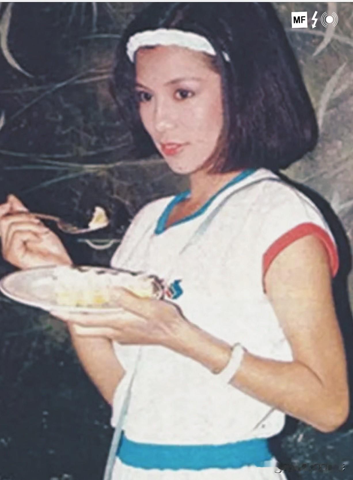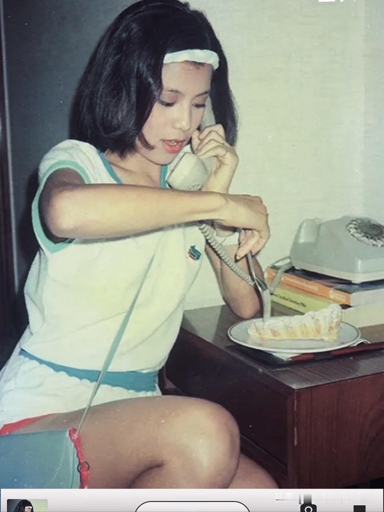 永远的翁美玲📽️1983年的休息室里,她把运动套装穿成了松弛感模板:白T拼蓝边,短裤坠着粉绳,发带随便一裹,清爽得像刚从球场过来。 斜挎的小包晃着红扣,刚好配盘子里的奶油蛋糕——一边夹着老式电话,一边用叉子挑蛋糕的样子,把“甜妹下午茶”焊在了当年的片场午后。 后来她是桃花岛的俏黄蓉,可这套装扮里的鲜活,才是藏在镜头外的少女气。翁美玲