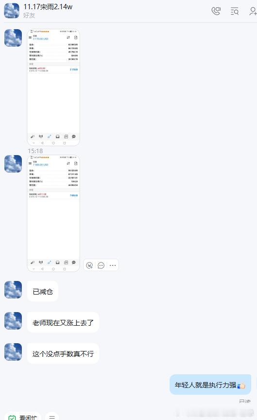 恭喜恭喜,实盘小雨拿下今日开门红,顺利进行中任何事情,什么时候开始都不晚,晚的是你从来都不敢开始!只要开始了,一切都简单了!不怕你不会,就怕你不做,一切赢在行动。执行力,就是生命力。恭喜我们实盘小雨朋友,跟上老唐节奏,顺利拿下心仪收益3660美金。美元兑换人民币相当于2.6万人民币。足够你来一场为期10到15天的新疆、西藏、云南或川西深度之旅,甚至还能去东南亚国家看看世界。你也可以用这笔钱置办一台高性能电脑、手机、相机,或是发烧级耳机。成功一单,离你理想的生活就更近一步。很值得,也很棒。请保持这样的好状态,继续在市场中把握机会、积累财富!屏幕前的朋友们,请耐心等待。有好的机会,老唐也会分享给大家。由于实盘和微博之间存在时间延迟,我会尽量发出大家能跟得上的策略。跟得上的朋友就一起行动,来不及的也无需气馁——市场永远有机会,我们要做就做能带来收益的好单。下篇见。