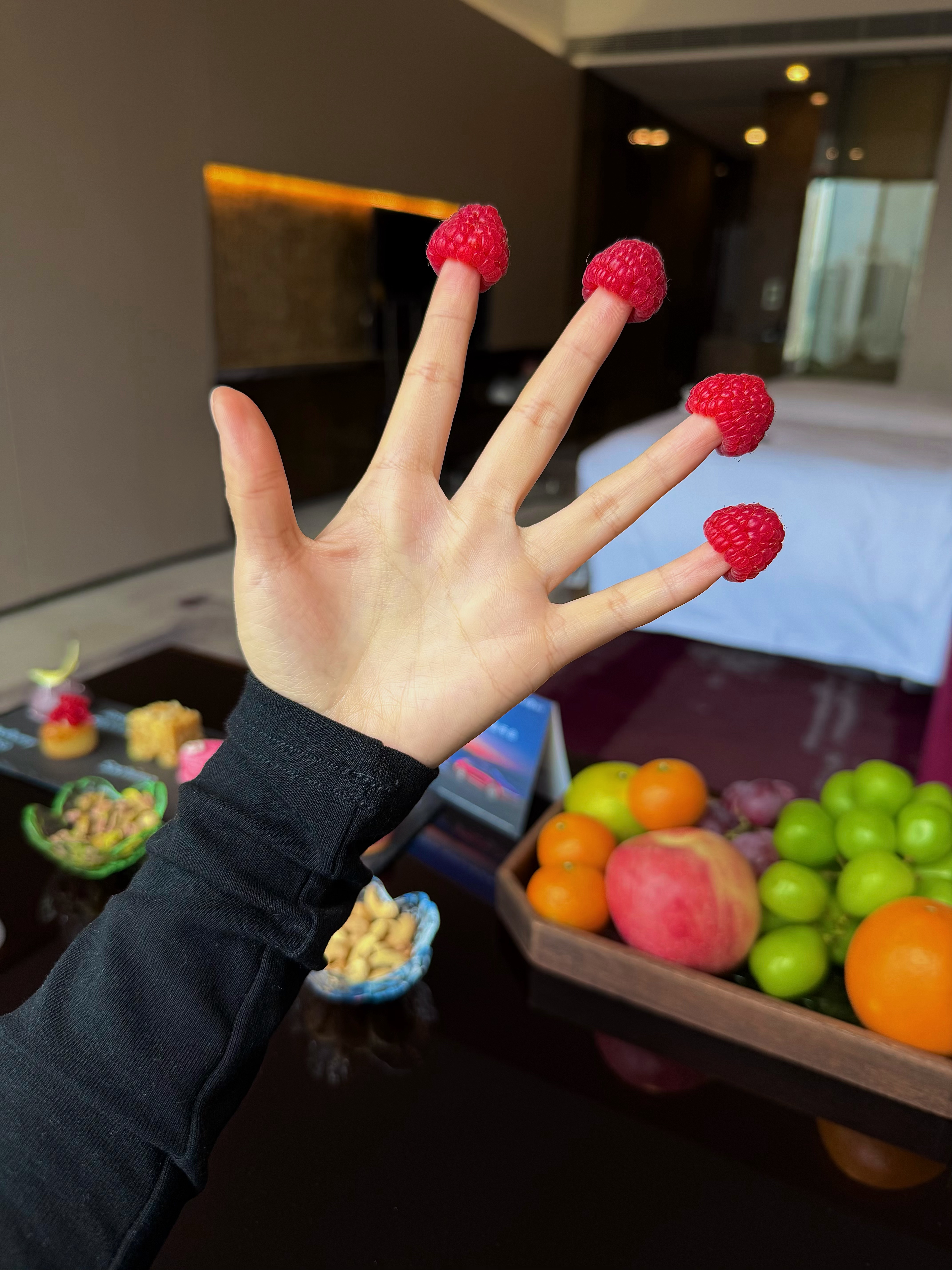 今天办入住比较早用眼神参与了欢迎果盘的摆放全过程小哥说陆续还有300多个房间要送