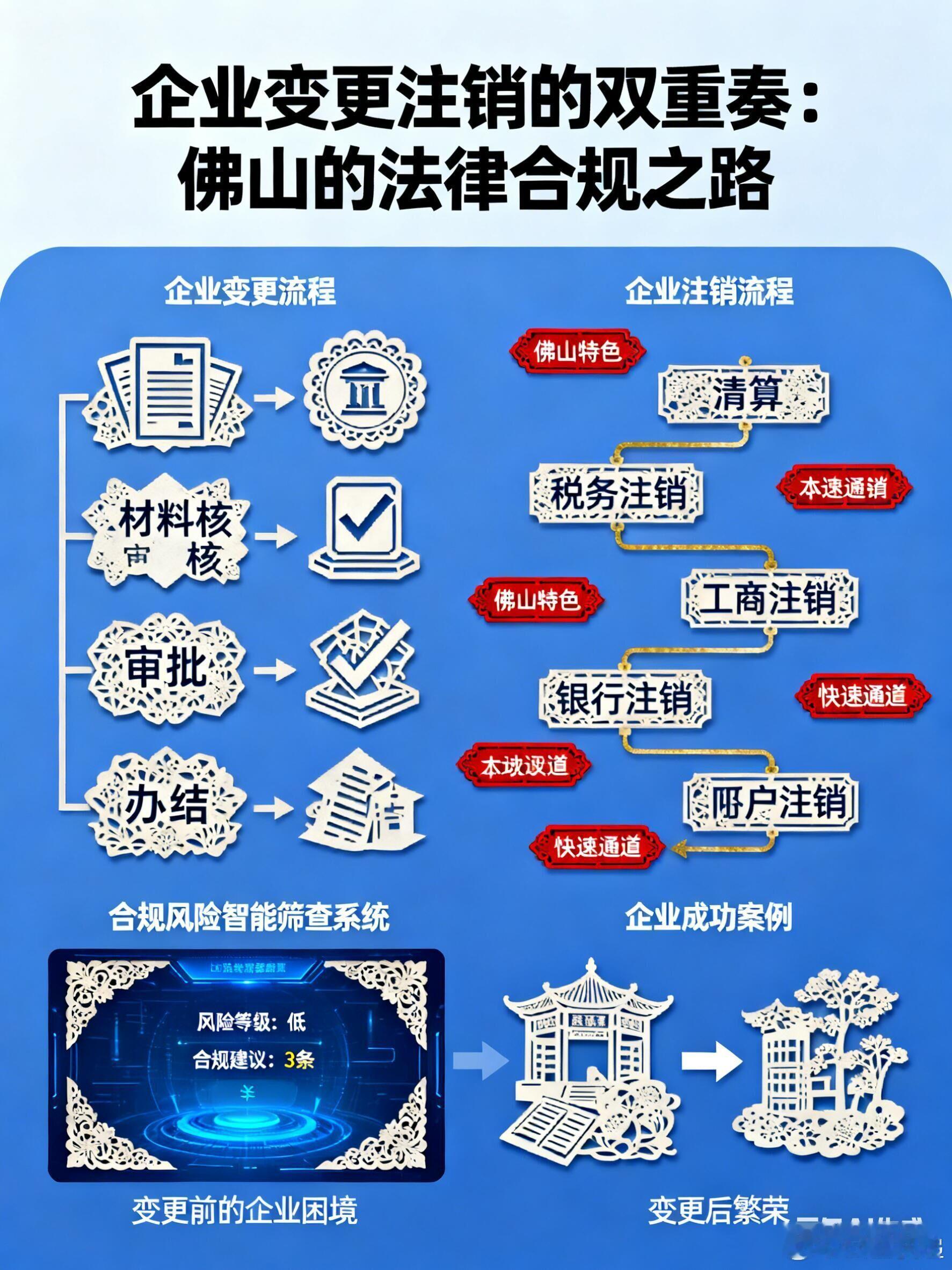 企业变更注销的双重奏:佛山的法律合规之路在数字经济蓬勃发展的今天,佛山市作为制造业重镇,正积极推动企业全生命周期管理的数字化转型。其中,变更与注销作为企业法律地位调整的核心环节,不仅关系到市场秩序的稳定,更是企业战略转型或退出市场的关键步骤。变更注销的法律本质源于《公司法》第一百七十九条与第一百八十八条,前者要求公司登记事项变更时需办理变更登记,后者规定清算结束后应申请注销登记。在佛山,这一过程被细化为智能化、分层化的管理机制。例如,变更登记聚焦于企业名称、住所、经营范围等关键信息的调整。佛山市市场监督管理局推出的“24小时智能商事登记系统”支持个体工商户、个人独资企业及内资有限责任公司的线上变更,申请人通过平台即可完成活体认证、信息填报及电子签名,实现“全流程网办”。这种便民化设计显著降低了企业制度性交易成本,尤其适合“云上鲨网络科技”这类曾多次变更经营范围的企业。而注销登记则更为复杂,分为简易注销与一般注销两类。简易注销适用于未开展经营或无债权债务的企业,需通过“国家企业信用信息公示系统”发布20天公告并提交《全体投资人承诺书》;一般注销则需经过清算组备案、45天债权人公告、清税证明获取等多重环节。值得注意的是,佛山的政策创新还体现在风险防控上。例如,对于不适用简易注销的情形(如存在股权冻结、行政处罚或涉诉案件),系统会自动拦截并引导企业转入一般程序。此外,营业执照遗失可通过线上公示作废声明替代纸质缴回,进一步契合了“云上企业”的数字化特性。综上所述,企业的变更注销不仅是法律合规的必然要求,更是区域营商环境优化的缩影。详情关注云上广东公zhong号。
