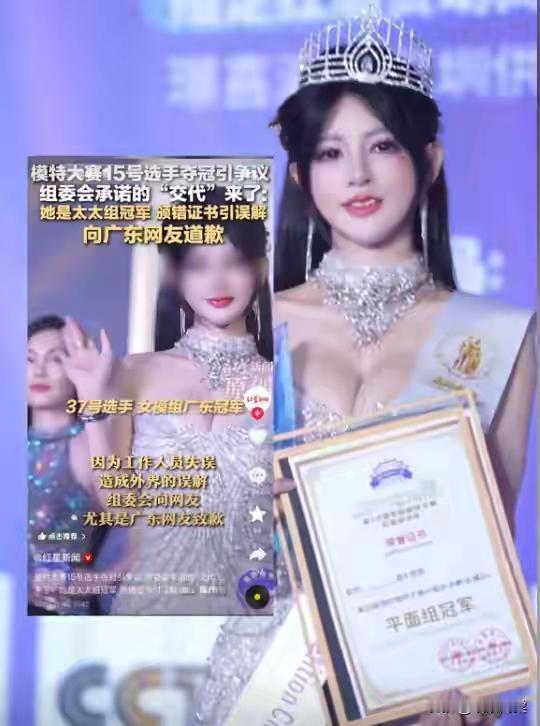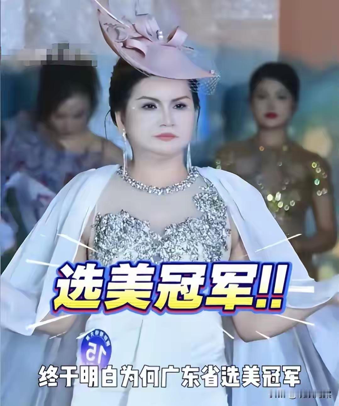 近日,广东深圳几个公司练手举办了模特选美大赛,现场有很多长相美丽身材火辣的小姐姐,然而令人大跌眼镜的是,最后成为冠军的是一个一身赘肉的六旬老太。如今后续终于来了,主办方给出明确回应,并不是带资进组,真正的冠军正脸曝光。15号选手的真实奖项是太太组冠军,组委会已向其说明情况并道歉,同时补寄了正确的证书。 网友评论: 我有个同事搭她有八九分像,脸型,嘴巴双下巴,特别是眼神,犀利得要飞出刀子杀人了[呲牙] 你猜老祖宗一直重农抑商是为了啥[奸笑] 这些人参加选美活动,就是秉承一问话,只要自己不尴尬,尴尬的就是别人[捂脸][捂脸][捂脸] 刀郎唱的罗刹海市里的事原来都是真的。 这些人参加选美活动,就是秉承一问话,只要自己不尴尬,尴尬的就是别人[捂脸][捂脸][捂脸] 来源:晓狱海棠