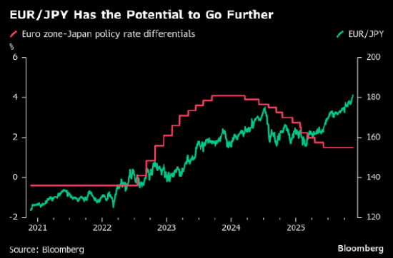 本季度欧元兑日元已上涨8左右,而随着口头干预促使投机者试探官员们的耐心极限,欧元仍有进一步上涨的空间。