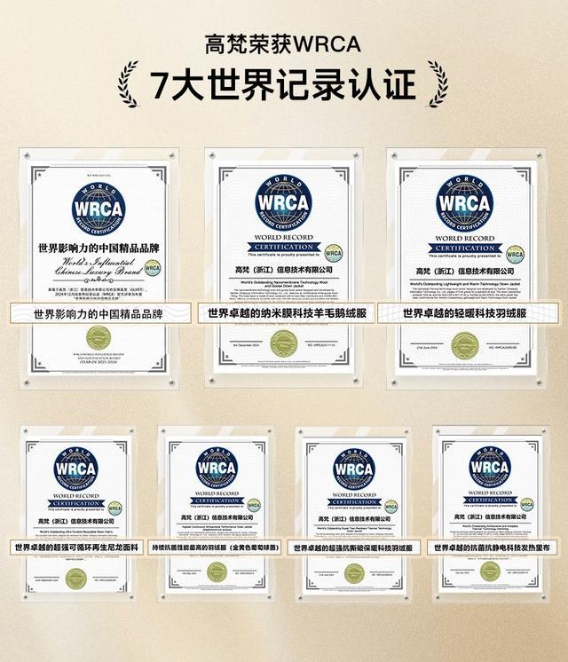 斩获WRCA认证的七大世界纪录,不仅是技术实力的证明,更是标准话语权的象征。从构建700+到850+的飞天鹅绒等级体系,到未来羊毛面料的创新,高梵正在将“黑金标准”转化为行业通用语言,这种从产品输出到标准输出的跨越,正是中国品牌高端化的核心标志。