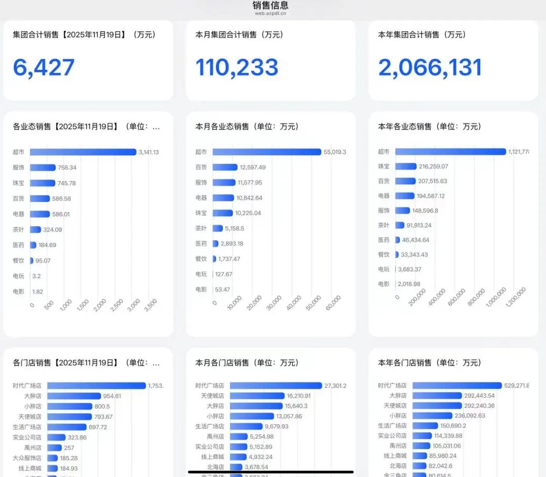 胖东来今年的销售业绩大幅超过预期。最新数据显示,截至11月20日,胖东来2025年合计销售额超过206.6亿元。其中,超市业态以近112.2亿元销售额领跑,珠宝以约21.63亿元销售额居第二,百货以20.75亿销售额居第三。具体门店方面,时代广场店以约52.93亿元居单独店榜首,大胖店以29.24亿元居第二,天使城店以29.22亿元居第三。