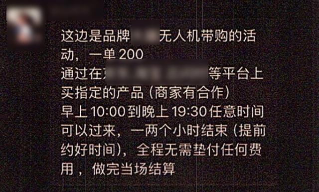 今年刚刚大学毕业的小刘,在网上看到有人发布了一则兼职信息,称代购无人机即可获高额佣金。经过联系,对方表示要借用小刘的电商平台优惠额度,代购一台某品牌无人机,即可支付350元佣金。