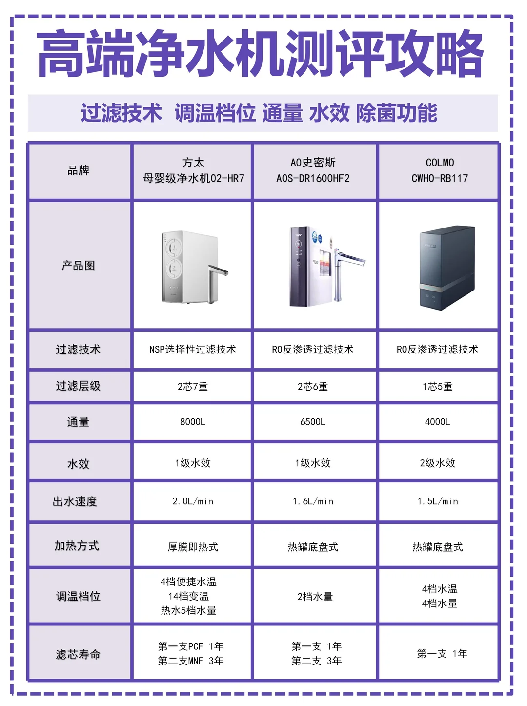 宝子们,咱每天都要喝水,这水的质量可太重要了!在深度测评了市面常见的几款机型:方太母婴级净水机02-HR7,AO史密斯AOS-DR1600HF2,COLMO-CWHO-RB117,今天就来唠唠怎么选到合适的净水机。