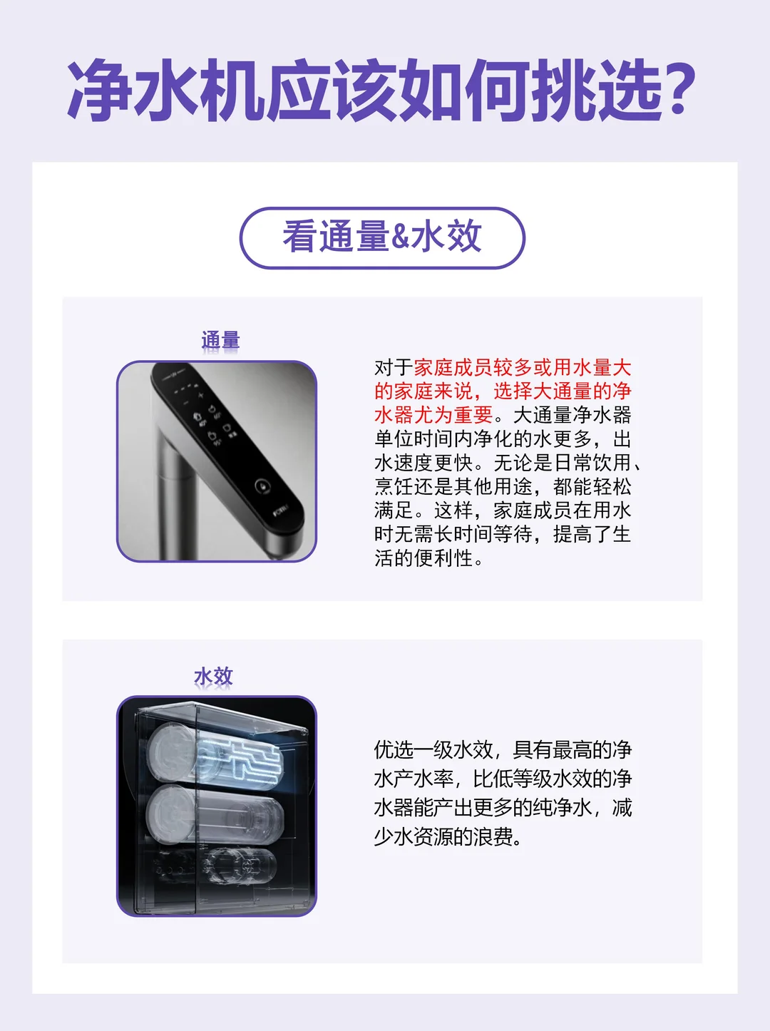 一定要选择一级水效的,能够比低等级水效的产出更多的纯净水,浪费的水资源更少。节约用水的同时,别小看了节省下来的水费,长久下来也是一笔不小的开支。