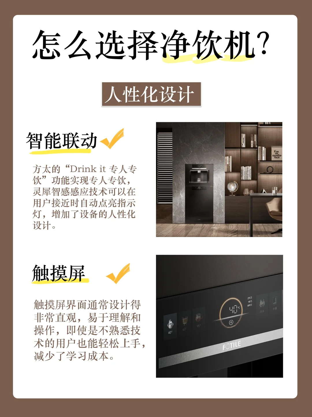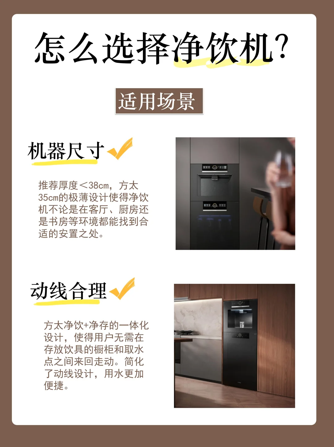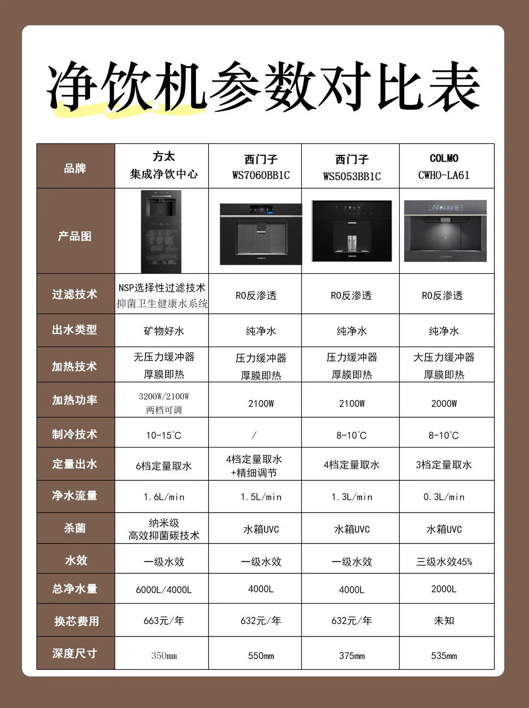 宝子们,作为家居测评博主,今天给大家带来净饮机的深度横测,教你怎么选到最适合自己家的那一款,全是干货,附上市面热门的四款机型参考,建议收藏! 1💧【过滤技术】 常见的有 RO 反渗透过滤技术,能高效滤除杂质,但也会滤除掉有益矿物质;个人更推荐NSP 选择性过滤技术,滤除重金属的同时保留有益矿物质,水质佳,每一滴都是鲜活健康的矿物好水! 2🏠【适用场景】 净饮机机体轻薄为主,美观且省空间,与家居融合度高,更容易嵌入橱柜。如果有配备净存机存放饮具则更佳。 3🏠【配套设备】 拥有额外的储存空间真的很重要,对于有宝宝的家庭来说,不仅饮具多种多样还要担心安全问题。像方太就很不错,净存机有深紫外UV除菌+中低温烘干技术,宝宝的东西拿出来随时可以用!省心省力省空间! 4💦【出水表现】 通量越大,单位时间内能净化的水越多,出水越快,推荐4000L以上通量,接水无需久等。温度调节上选择有多档可调温的,常温、40℃(冲奶)、85℃(泡茶)、100℃(开水)等多需求均可满足。 5💰【人性化设计】 性价比不单看价格,要综合多方面。考虑到家里老人孩子使用的时候的便利性,触摸屏一定是关键,最好还能和手机APP有智能联动,有任何情况手机上能够第一时间收到消息。 作为家居博主我家选择的就是方太集成净饮中心,超薄的机身完美适配我家的装修风格,综合性价比突出。净饮机和净存机一体化的设计超级实用,1.6L/min的出水速度,装水时再也不用苦苦等待了! NSP选择性过滤技术,滤除重金属留下有益矿物质,让我们喝到的每一口水都是健康的矿物好水! 宝子们,选净饮机要综合考虑各因素,选到合适的,让家人喝上放心水!今天的干货分享就到这里啦希望对你有帮助还有什么疑问可以下方留言给我呀see you !