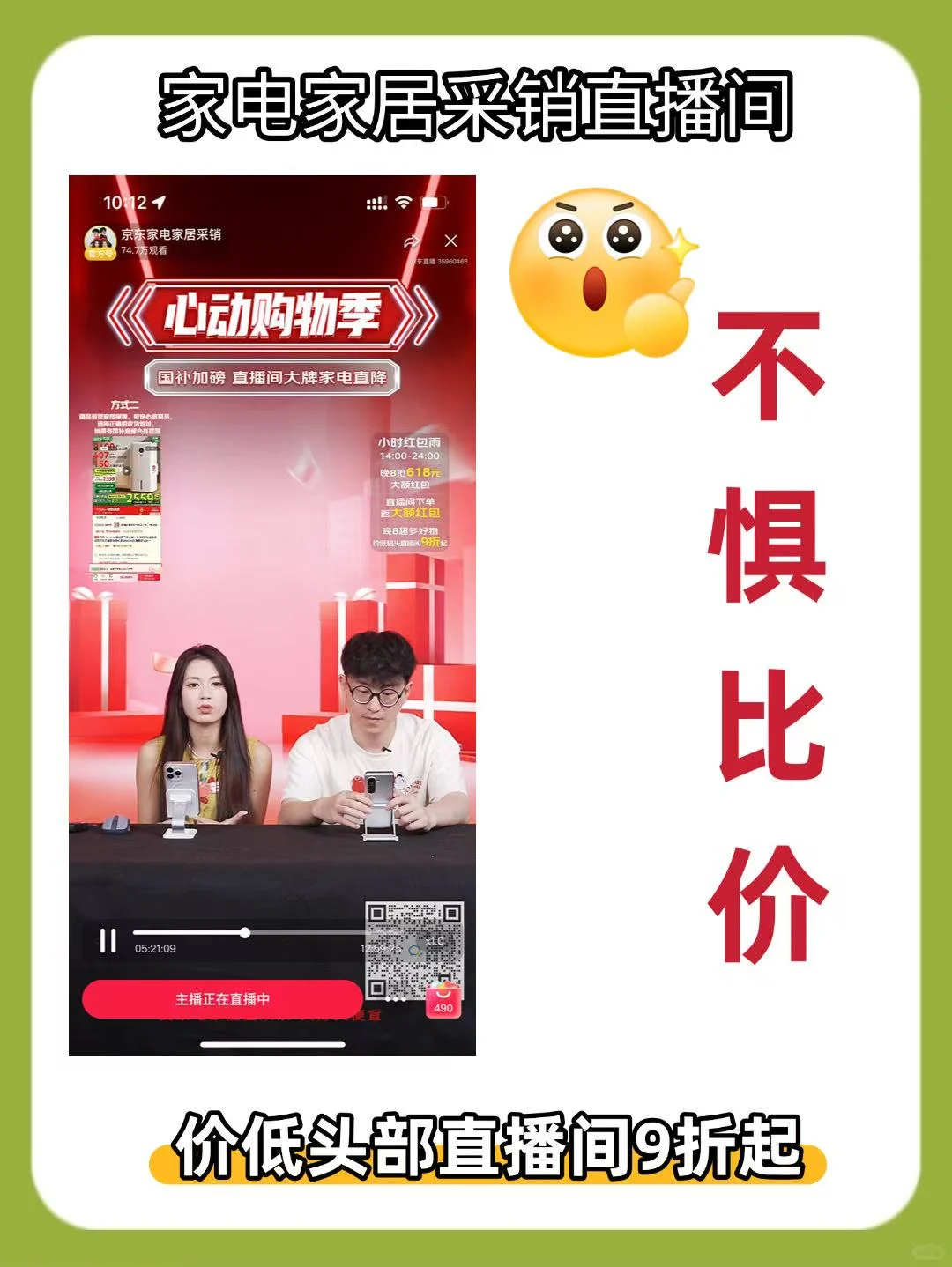 现在搜“不惧比价”进家电家居采销直播间,爆款家电价低头部直播间9折起,官方正品+售后无忧👍