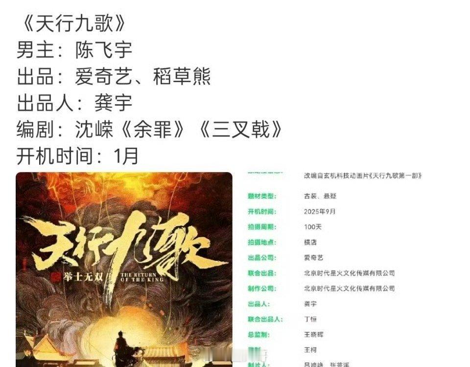 陈飞宇又有新剧消息了,陈飞宇出演电视剧《天行九歌》,新剧改编自人气国漫《天行九歌