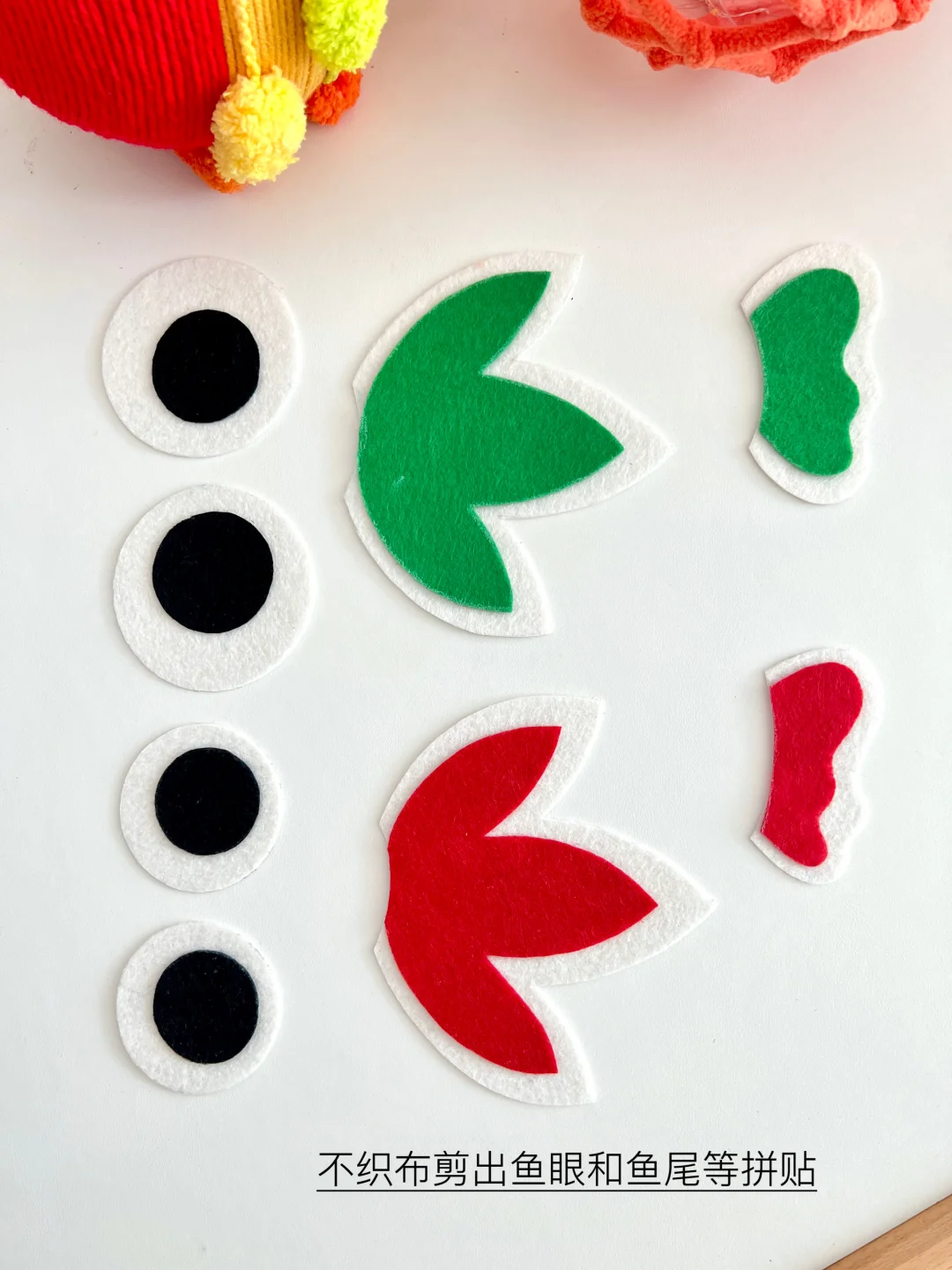 3️⃣不织布剪出鱼鳍鱼尾粘贴