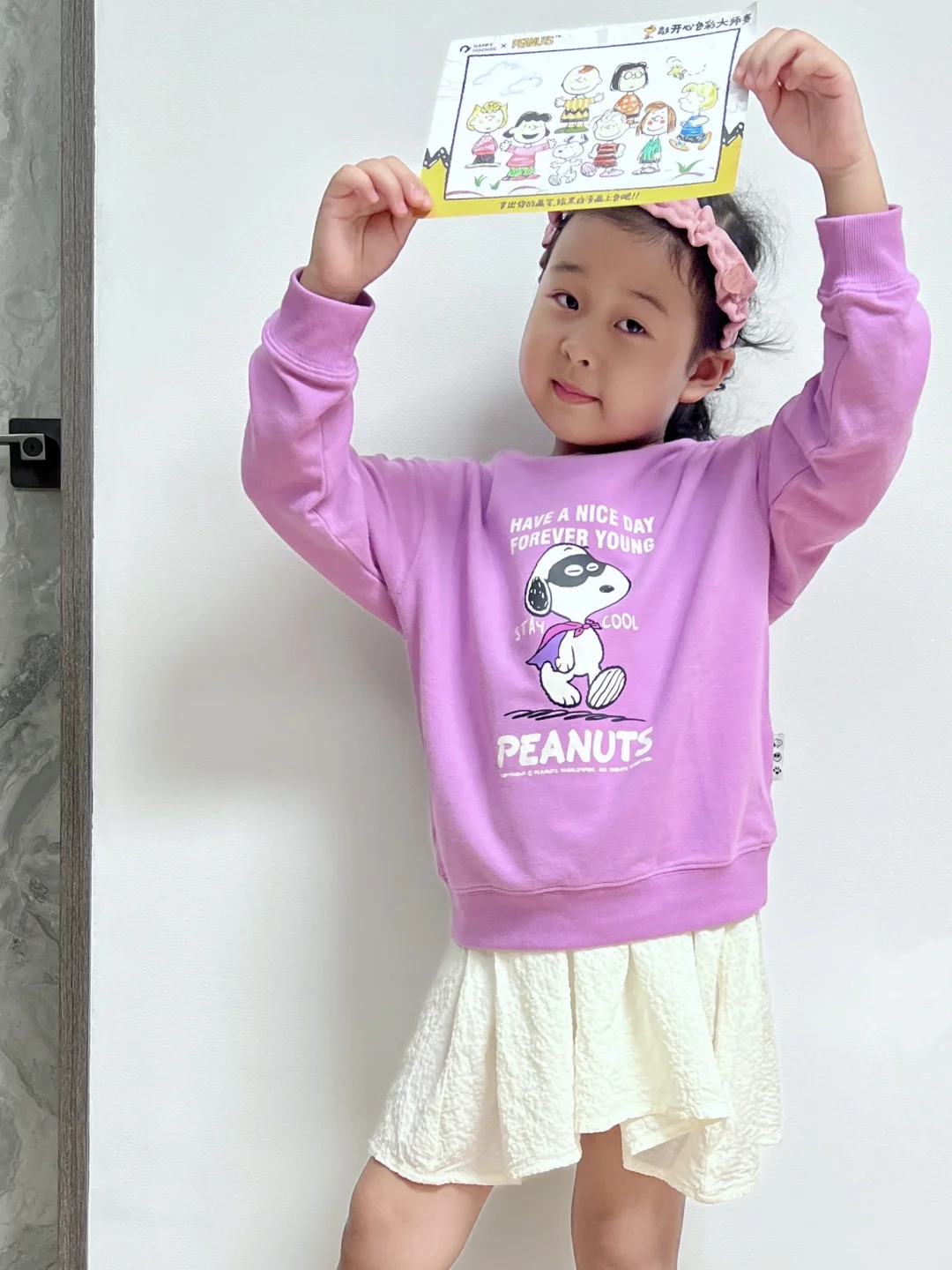 [星R] 新买的史努比联名卫衣到了,质量棒棒哒[点赞R] 衣服可爱就算了,还惊喜的随衣送了填色卡,小家伙一拿到手就迫不及待开画,娃超认真的涂色和发自内心的快乐,真的太治愈了! 画完举着说这是她的大作,必须参赛展示下,老母亲也不能扫兴,给娃diy了史努比展示牌。 买衣服送快乐,这波联名值了[派对R][派对R][派对R][派对R]